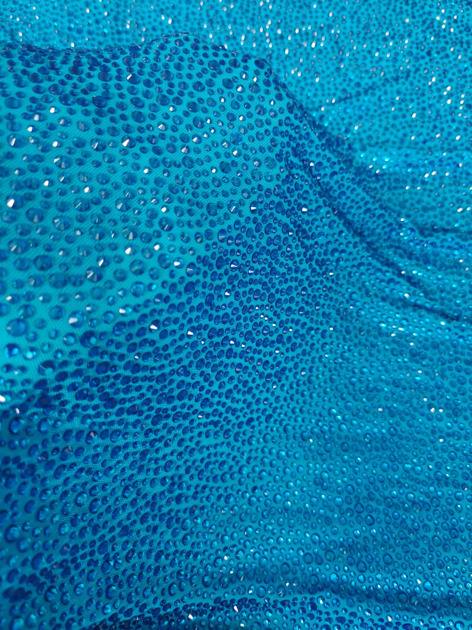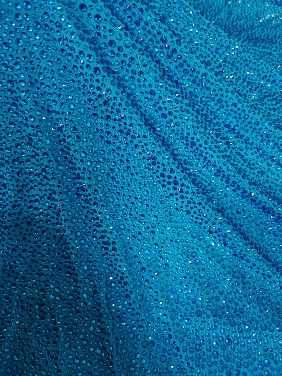 Aquamarine Mixed Crystal Sizes on Blue Fabric