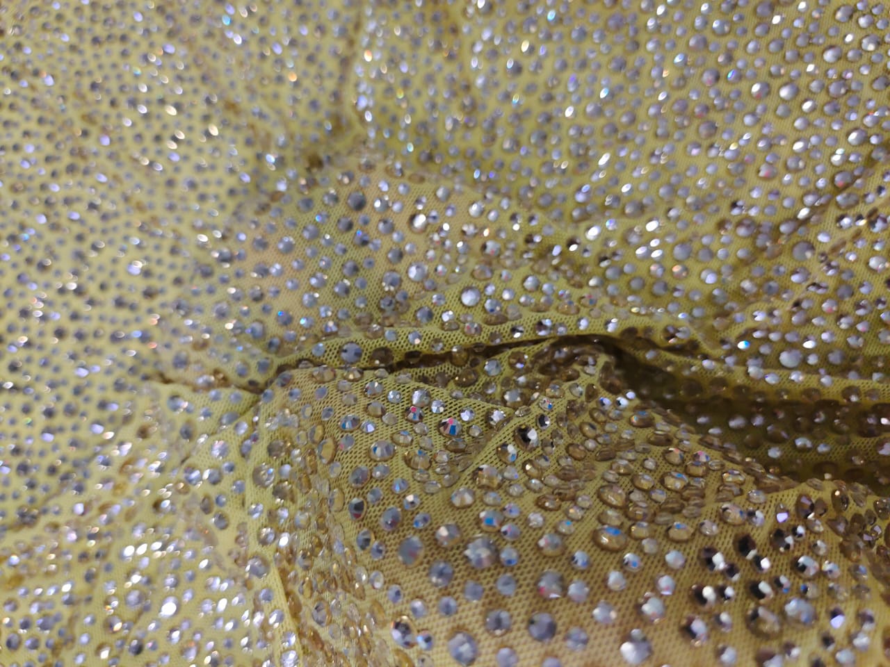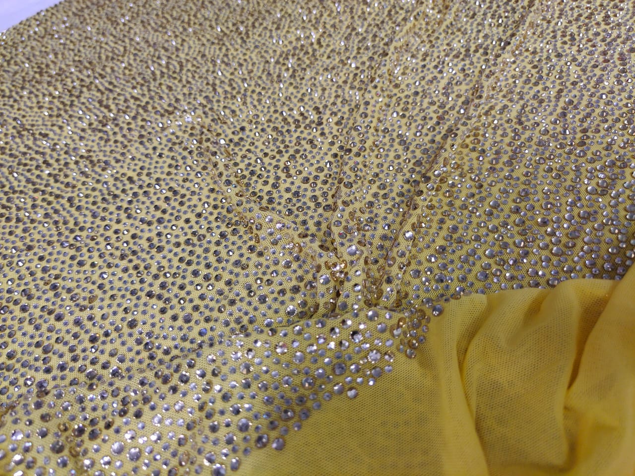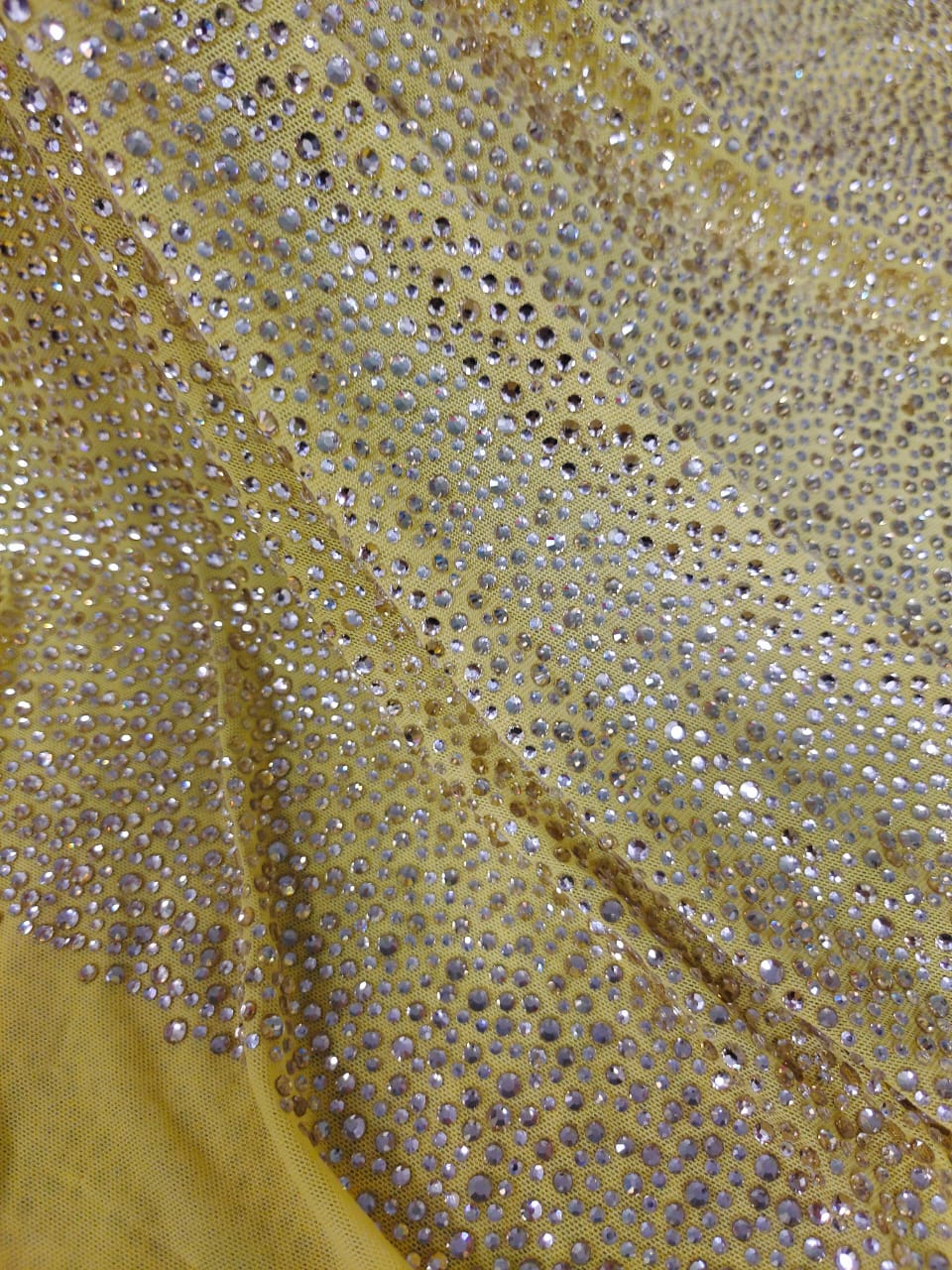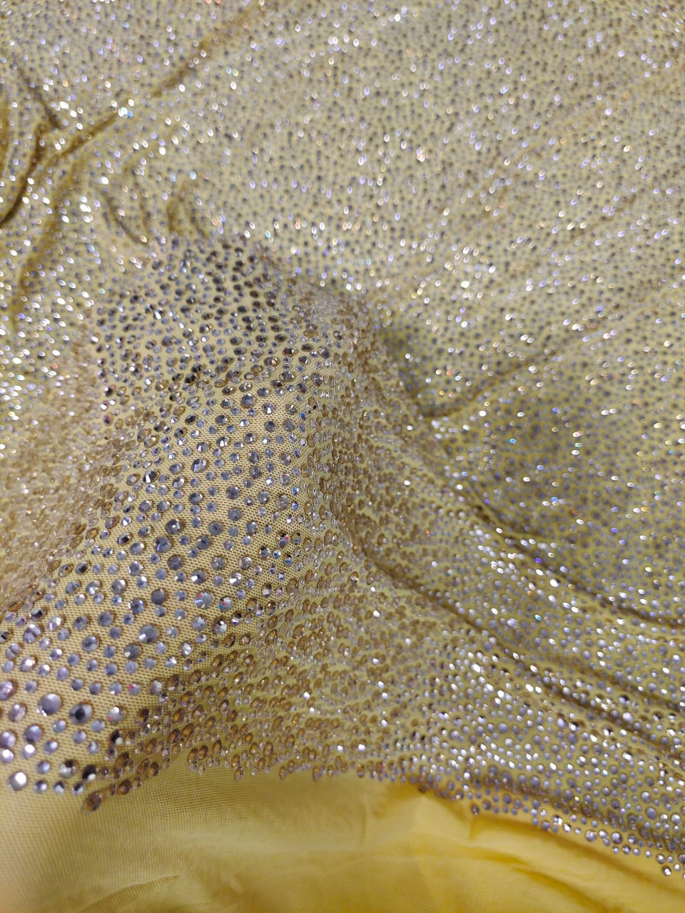 Silver Mixed Crystal Sizes on Yellow Fabric