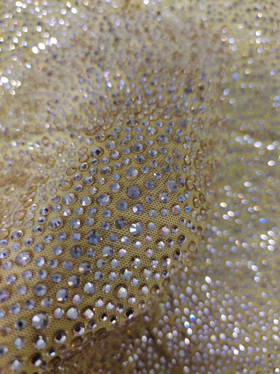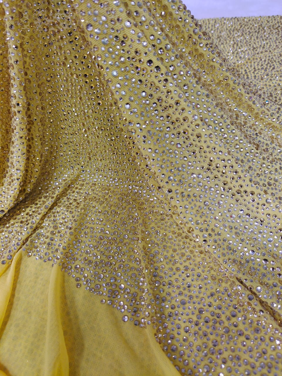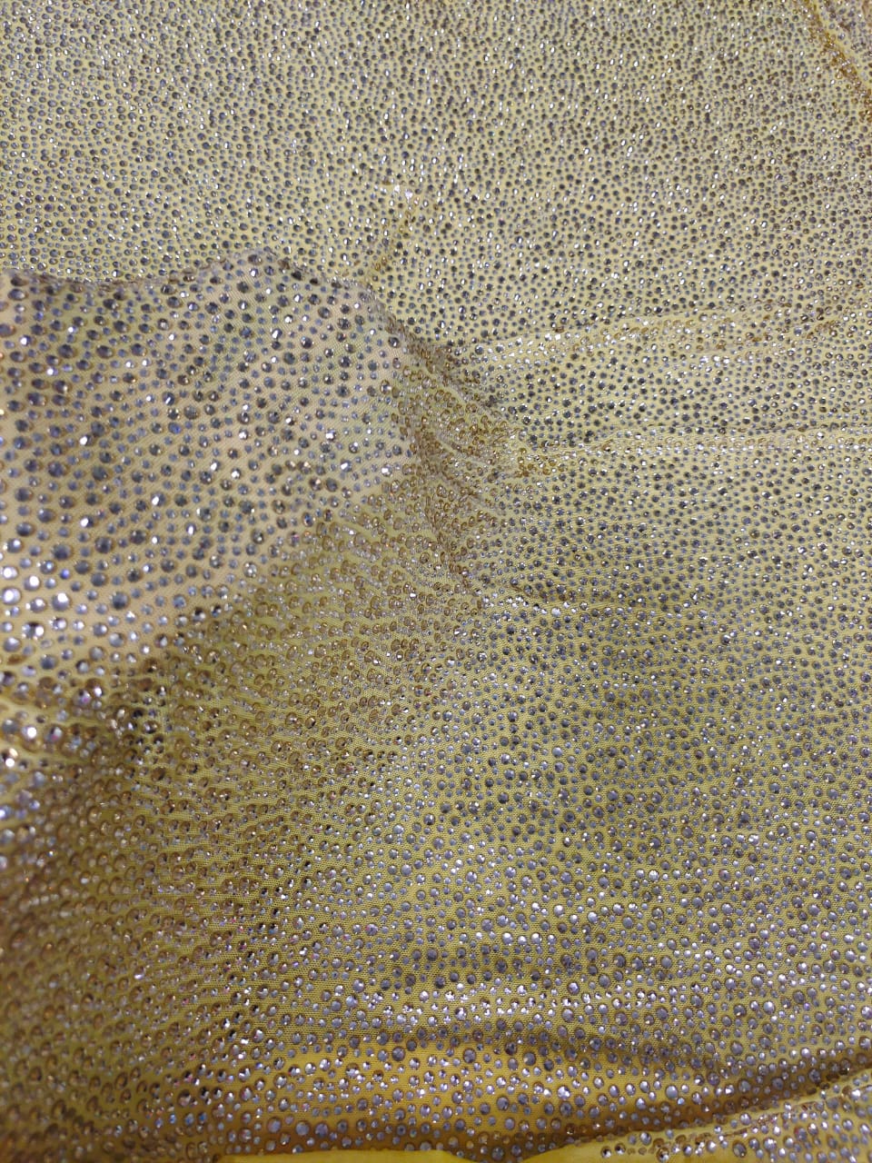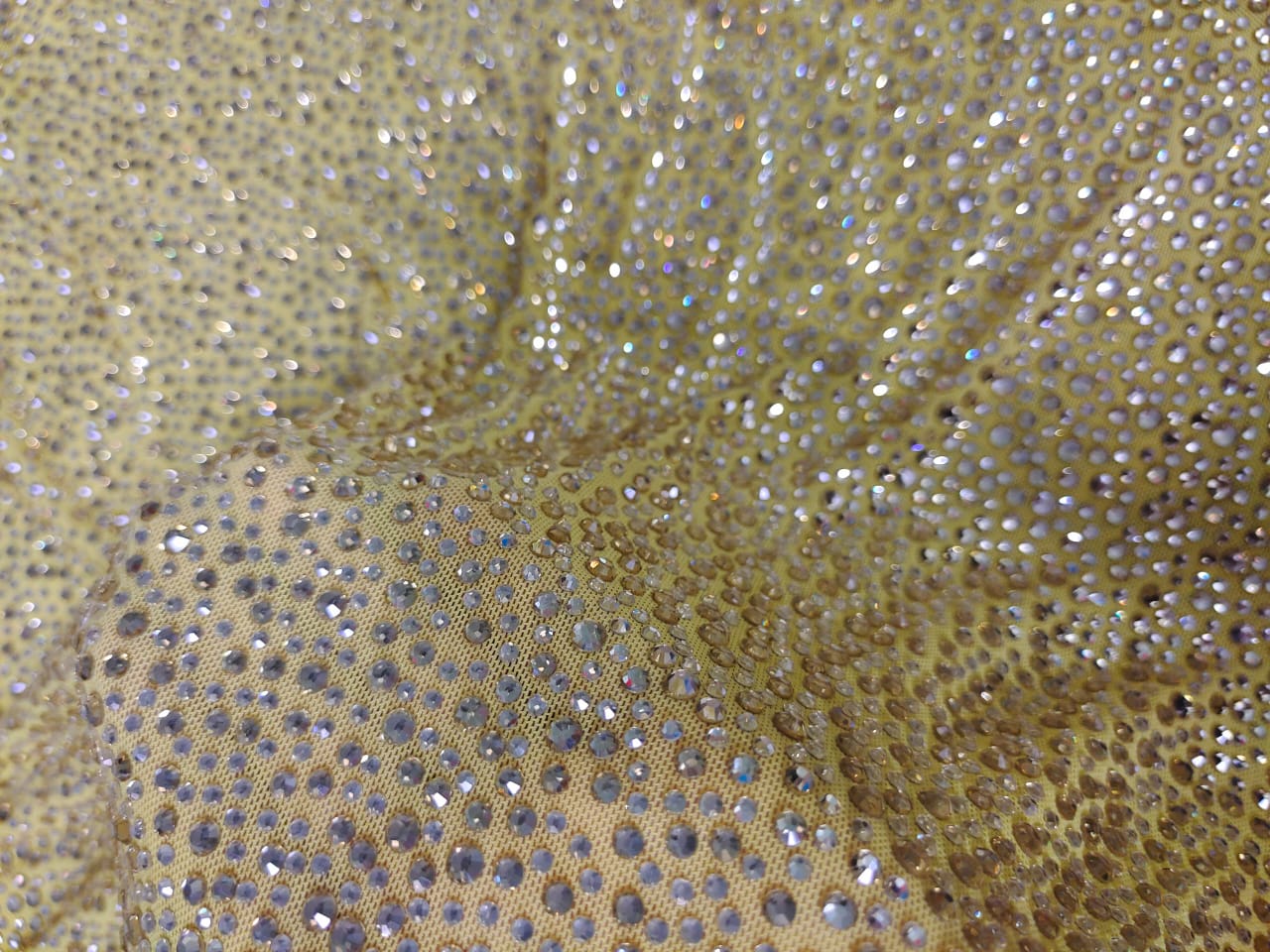 Silver Mixed Crystal Sizes on Yellow Fabric