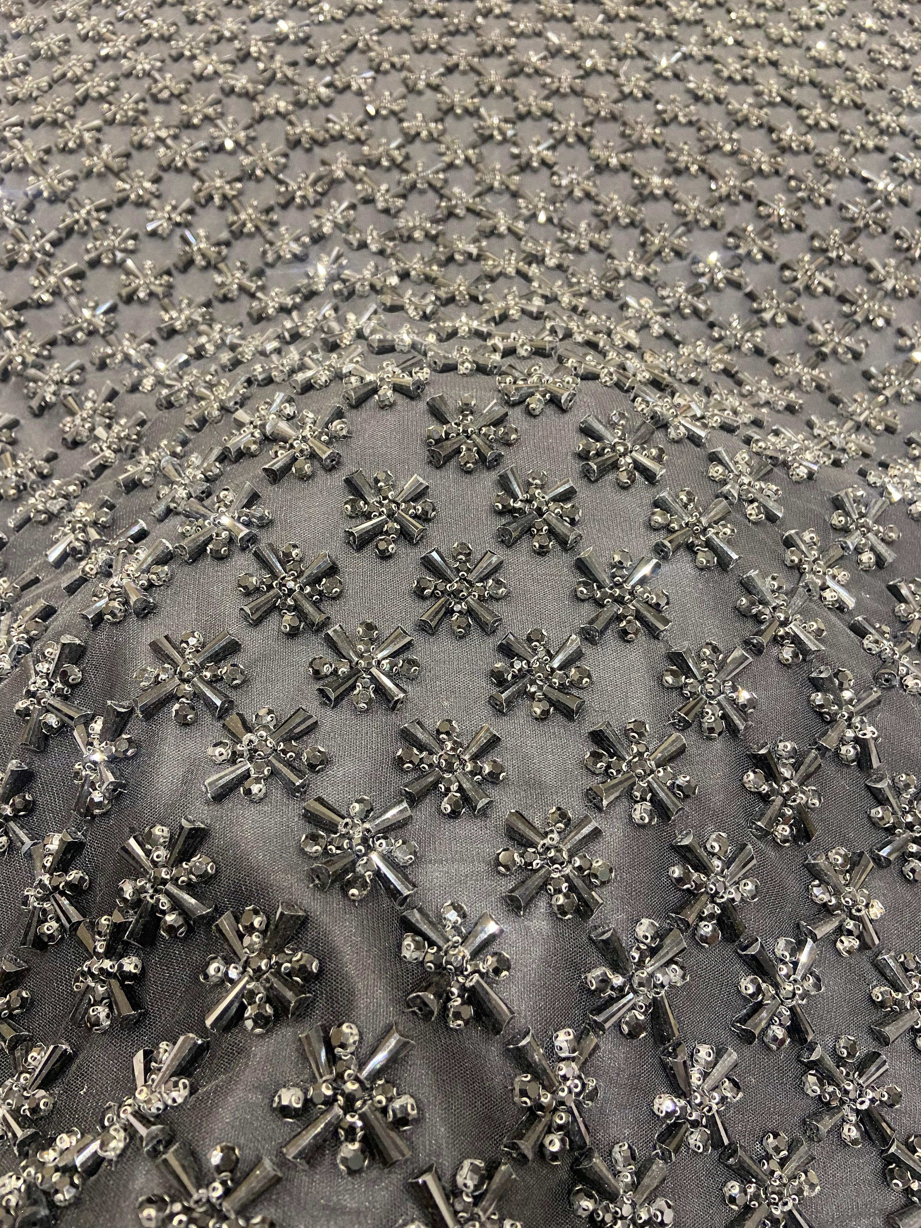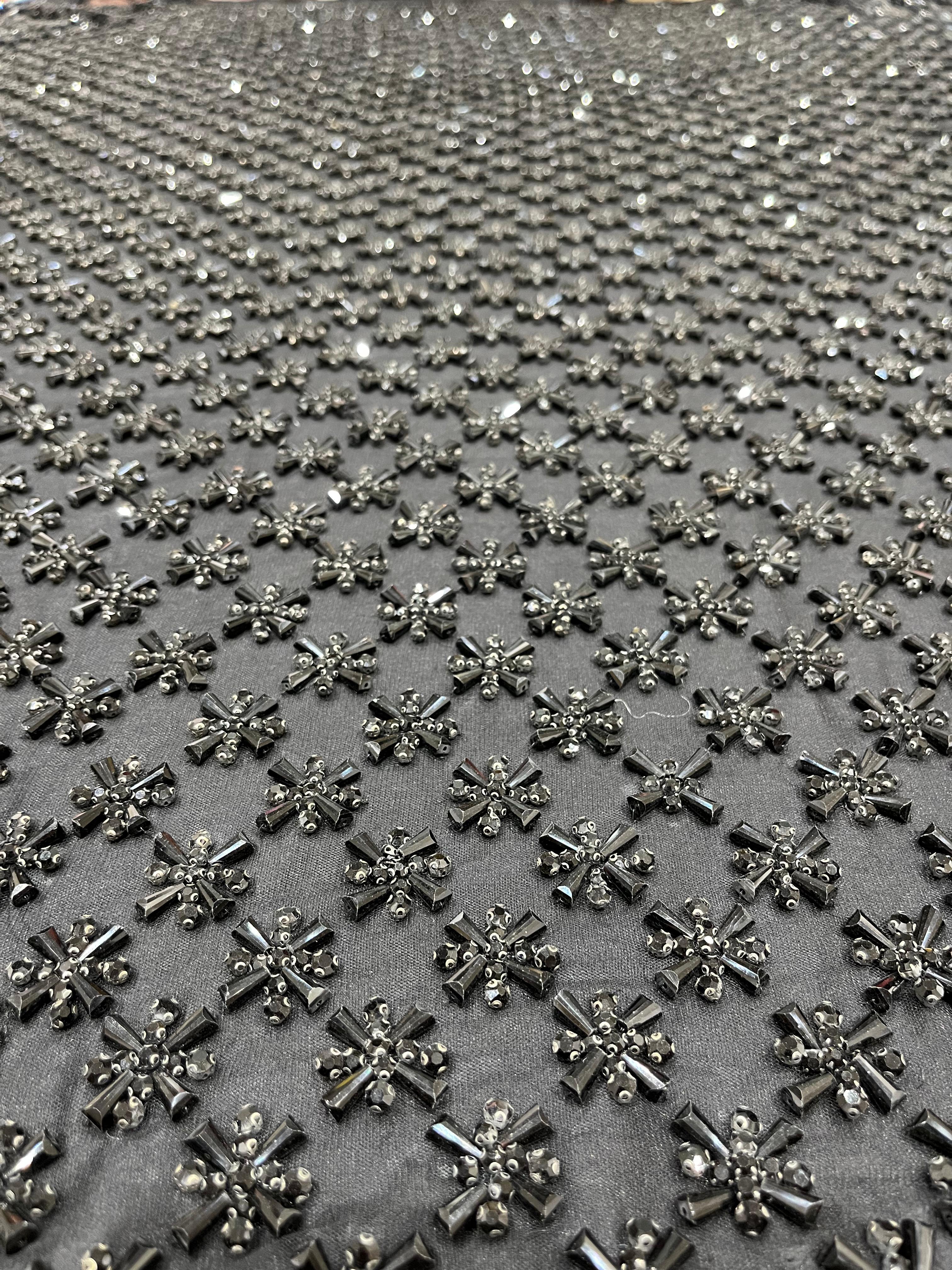 Luxe Hand-Beaded Crystal Tulle Fabric
