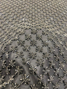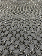 Jet Black 3D Bead Flower Embroidery on Tulle