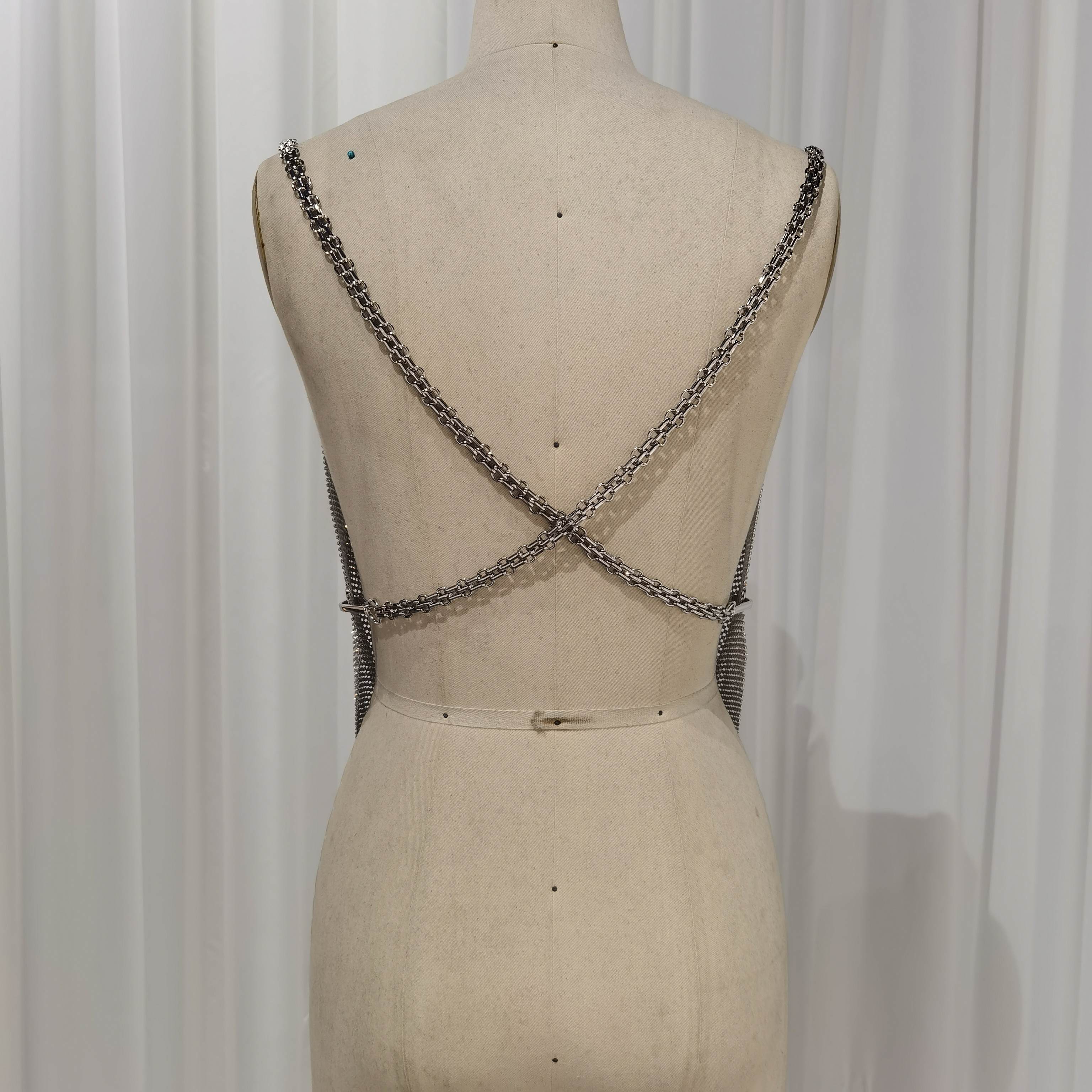 Meet our exquisite Crystal Mesh Cowl Neck Top in stunning silver with a captivating V-ending design. Elevate your style with this glamorous and versatile piece that seamlessly combines sophistication and allure. The intricately woven crystal mesh adds a touch of luxury, catching the light with every movement. The cowl neck drapes gracefully, creating an effortlessly chic look, while the V-ending adds a modern and trendy twist. Perfect for special occasions or a night out on the town, this top is a must-have for those who appreciate the artistry of fashion.