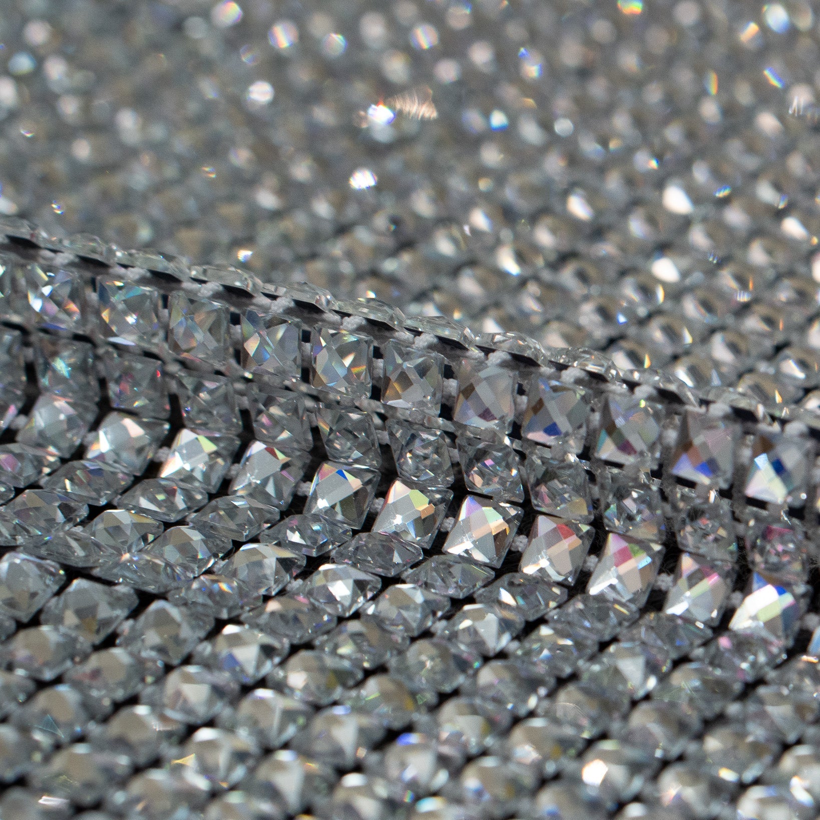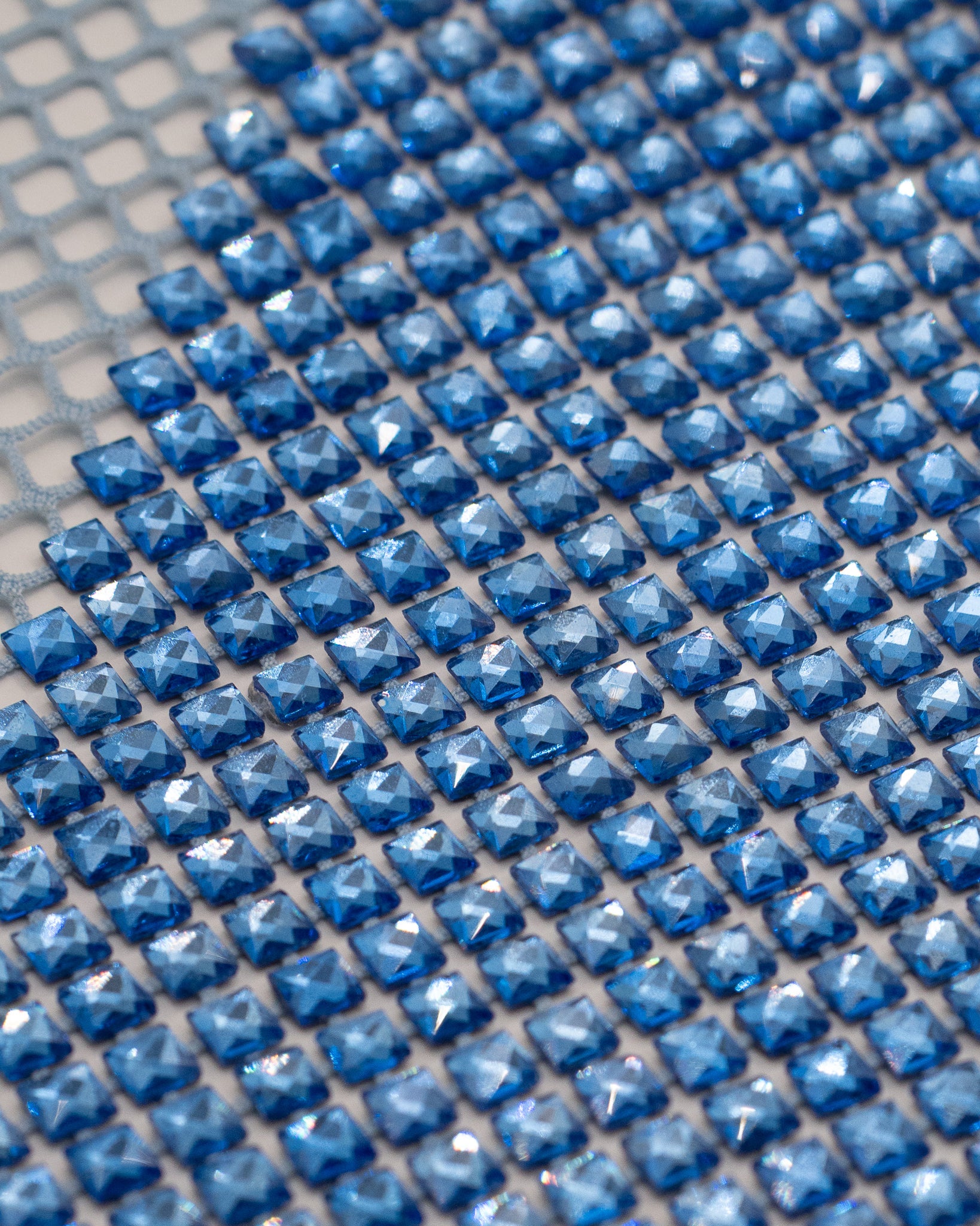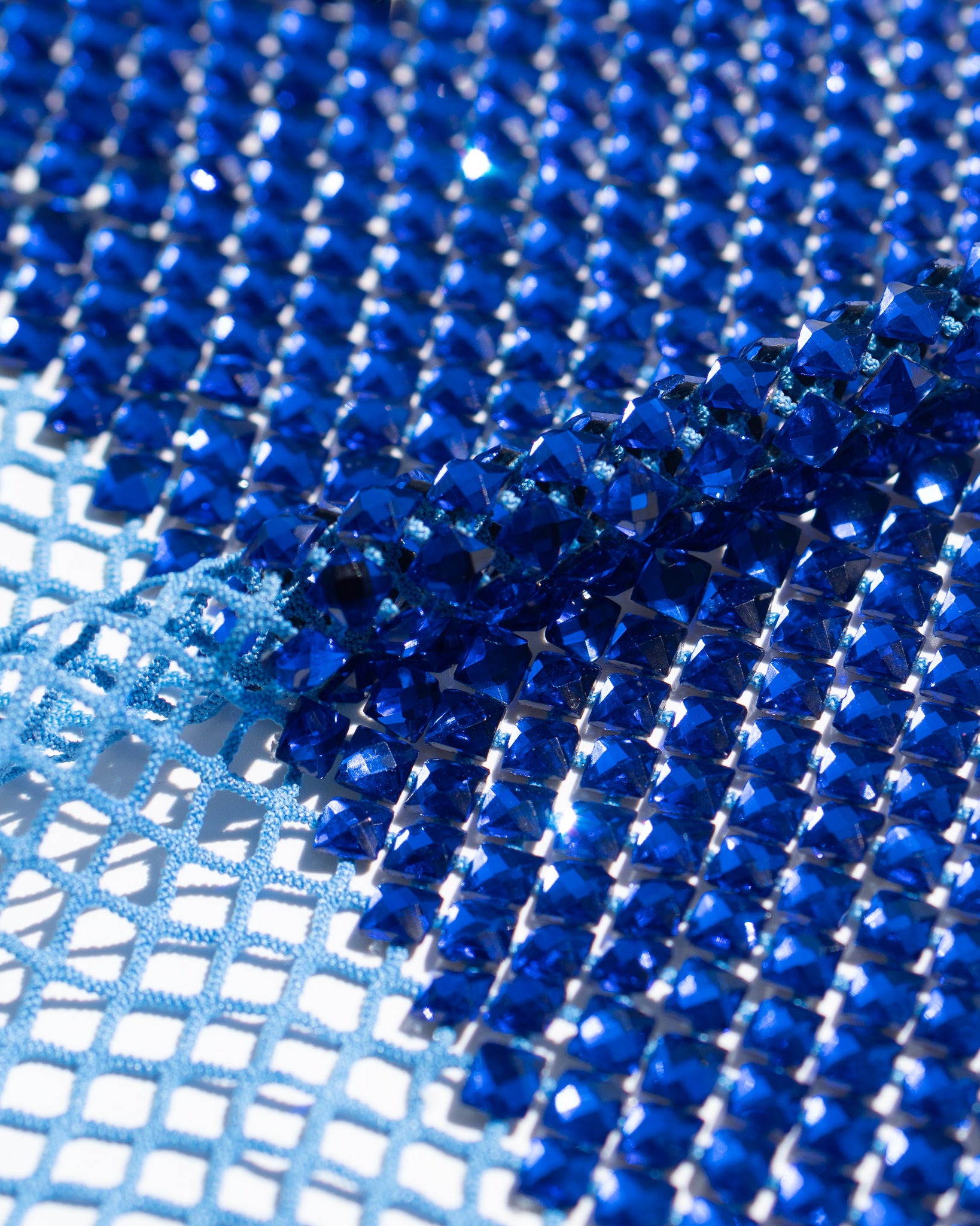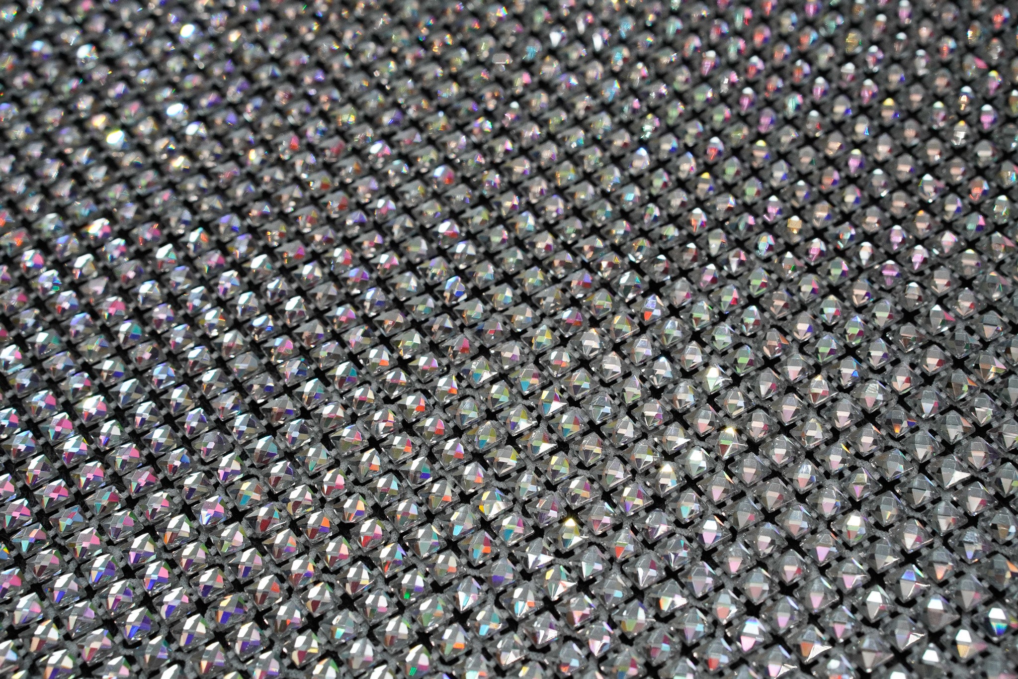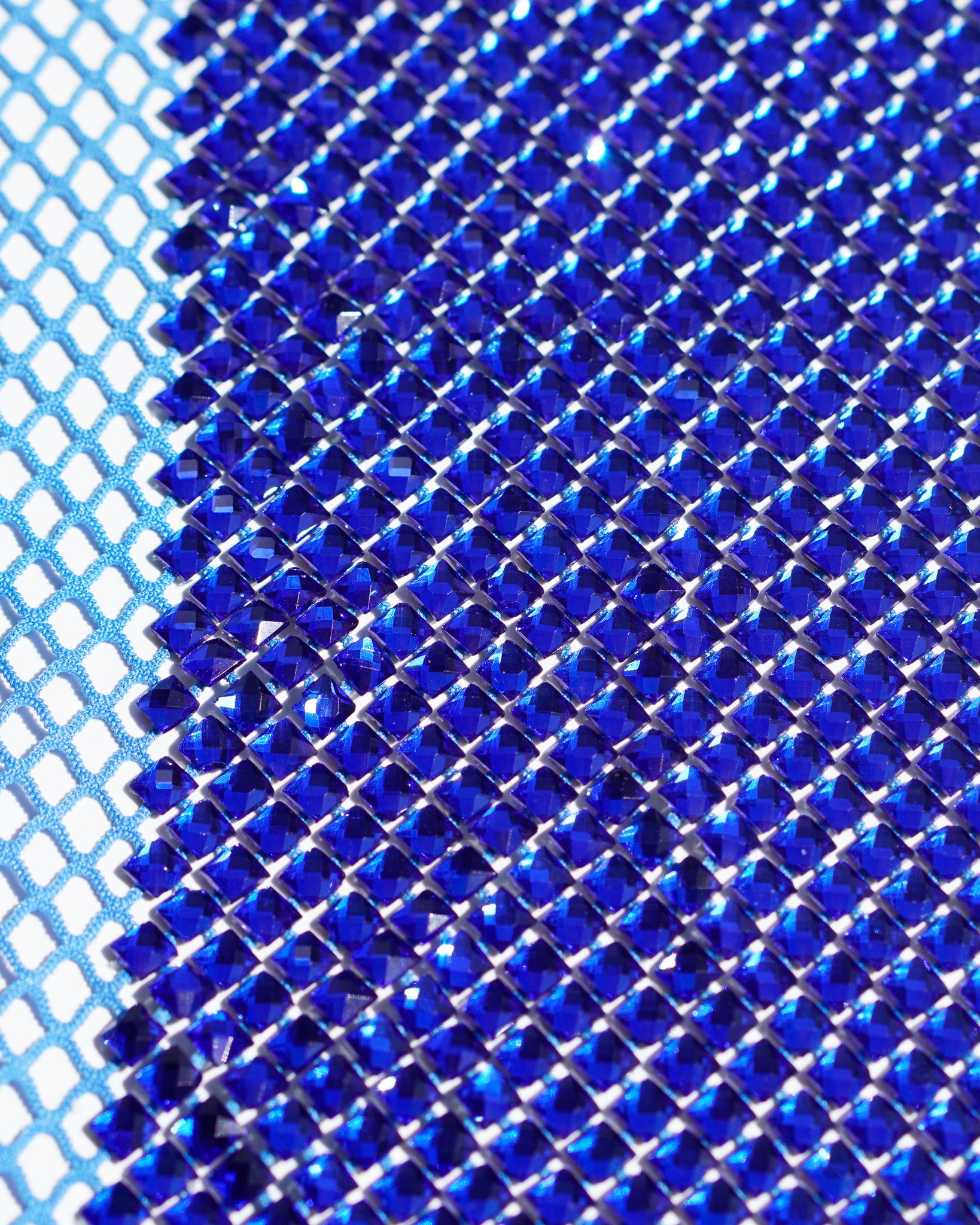 Crystal fishnet fabric with hotfix rhinestones designed for couture, stagewear and high-end fashion designers. This stretch net fabric combines transparency and brilliance, making it ideal for statement garments, performance costumes and eveningwear. Available in multiple crystal sizes, colors and settings.