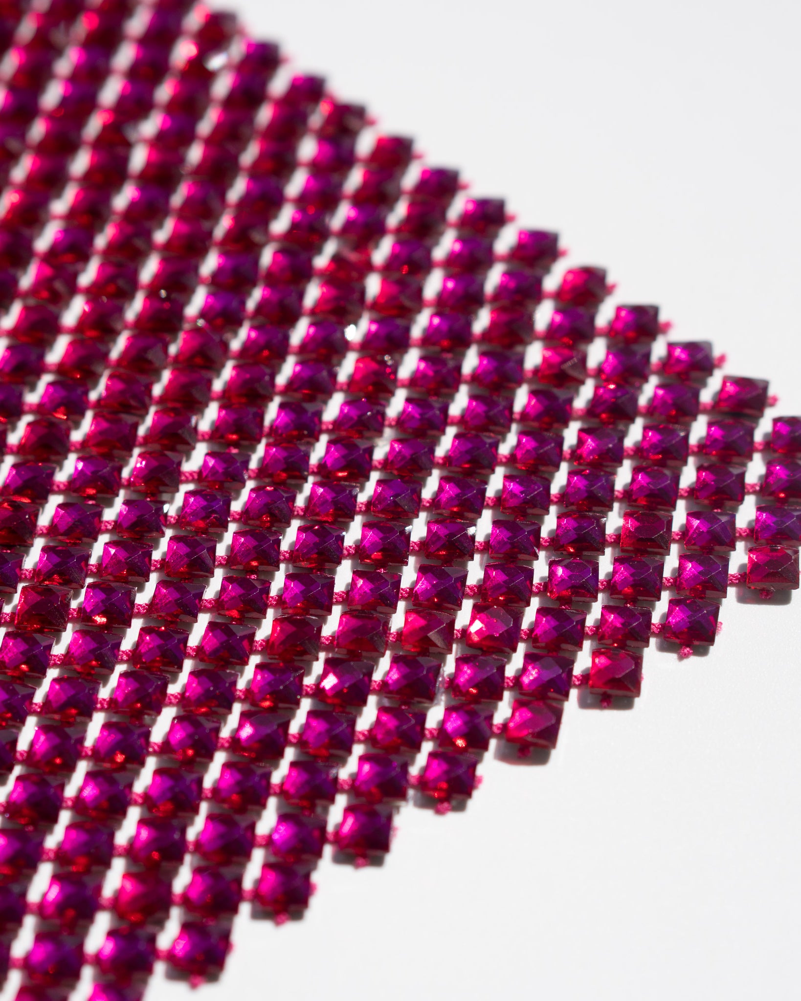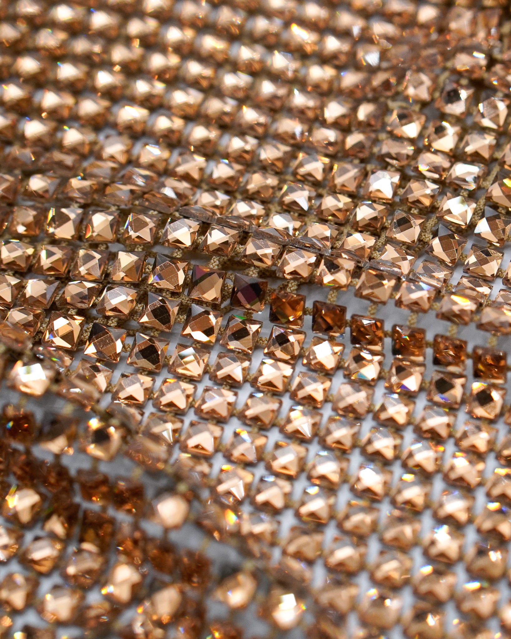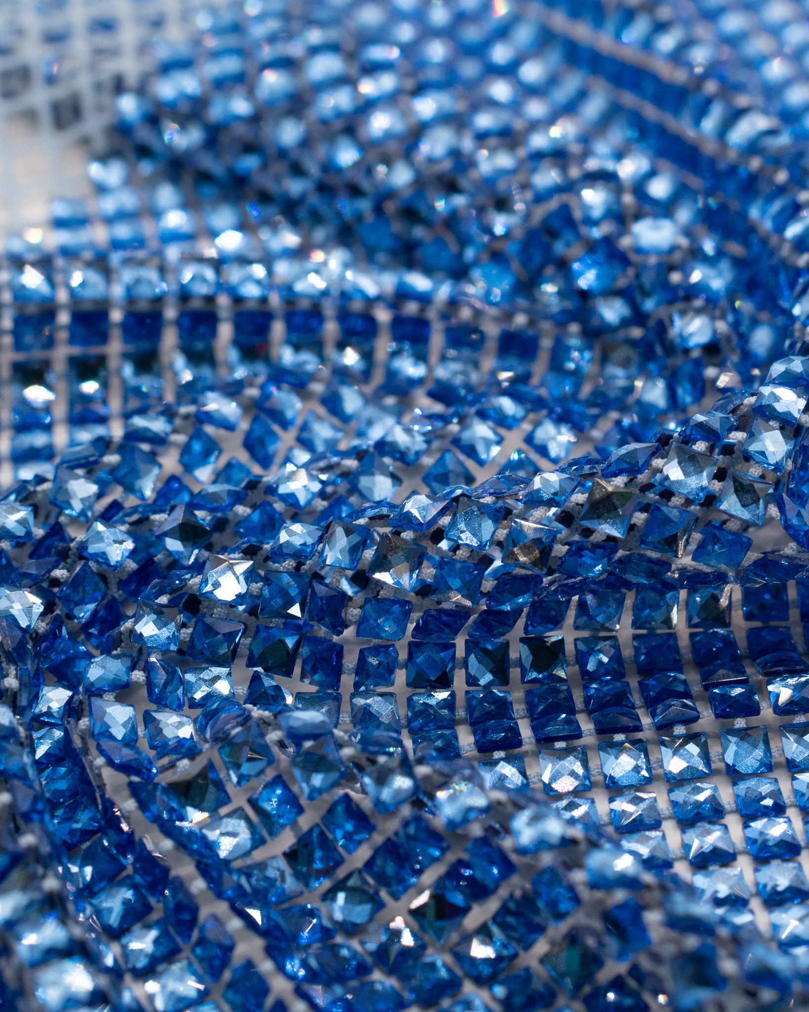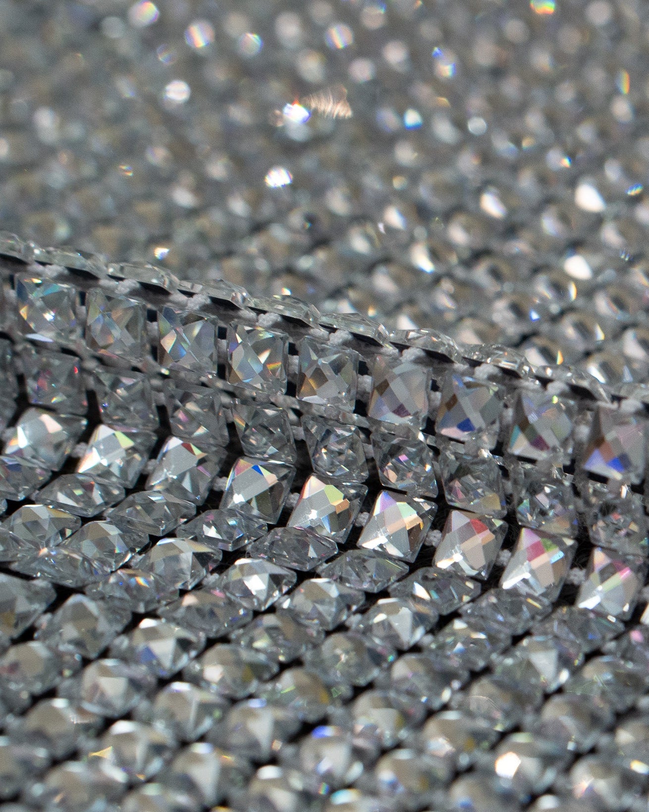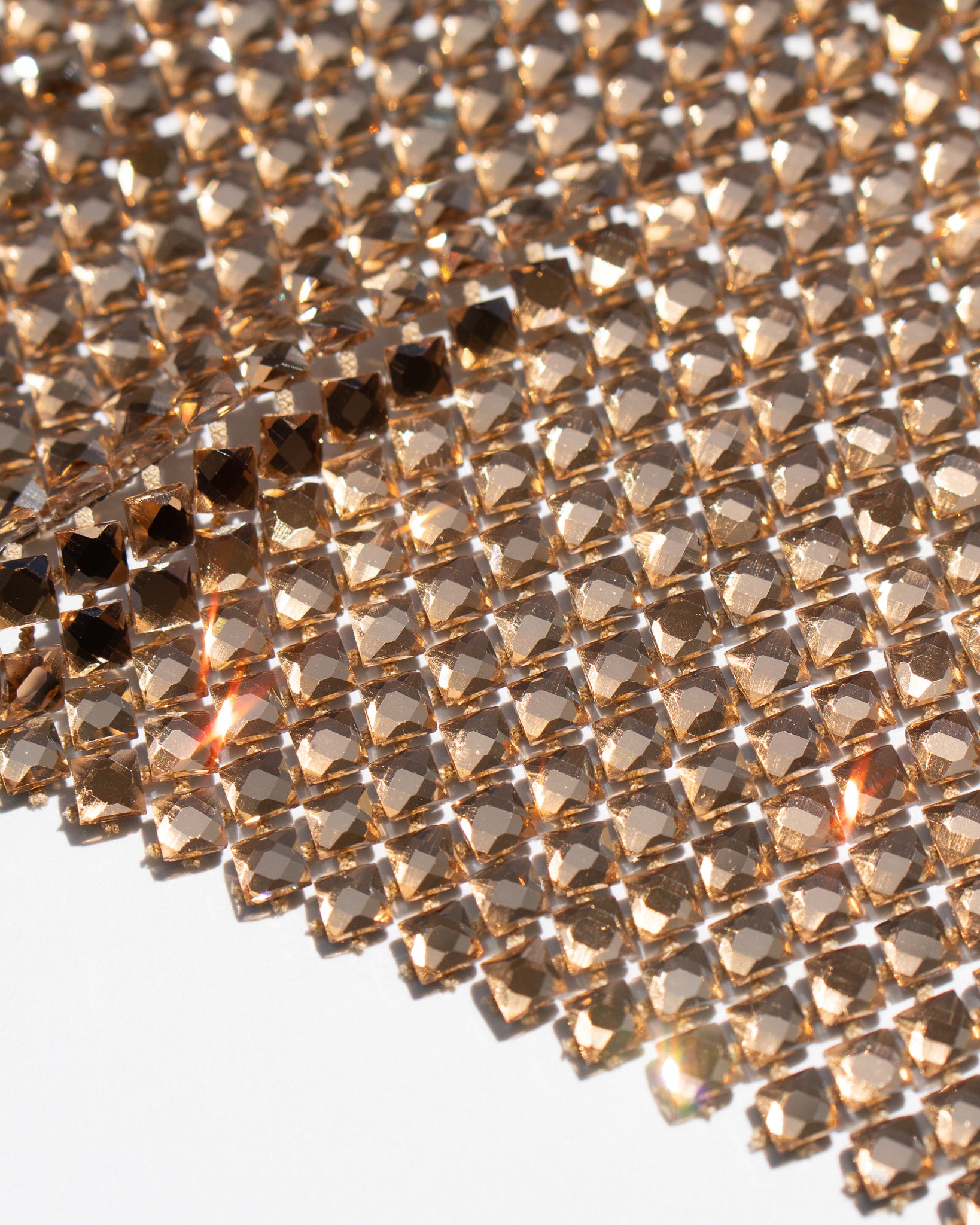 Crystal fishnet fabric with hotfix rhinestones designed for couture, stagewear and high-end fashion designers. This stretch net fabric combines transparency and brilliance, making it ideal for statement garments, performance costumes and eveningwear. Available in multiple crystal sizes, colors and settings.