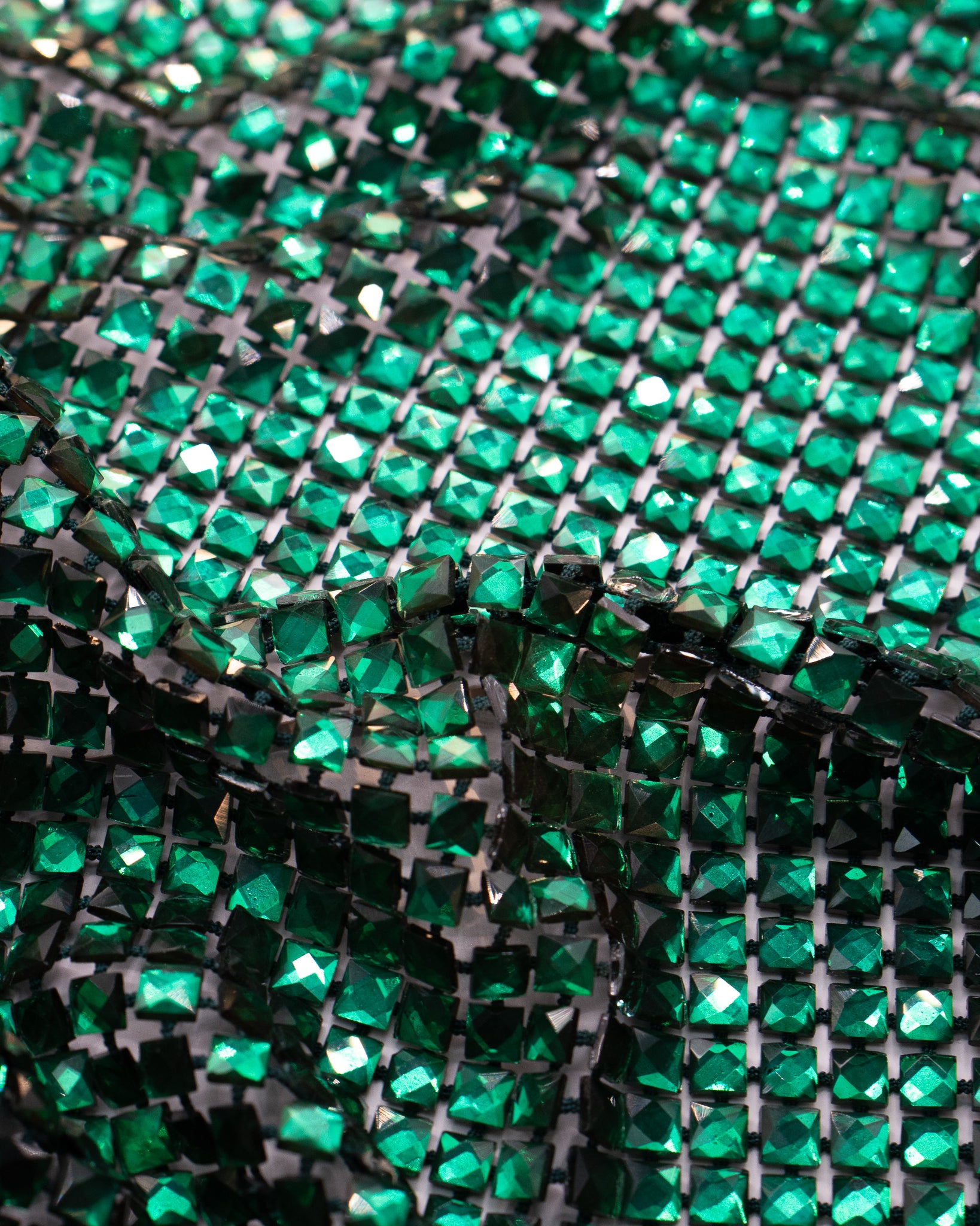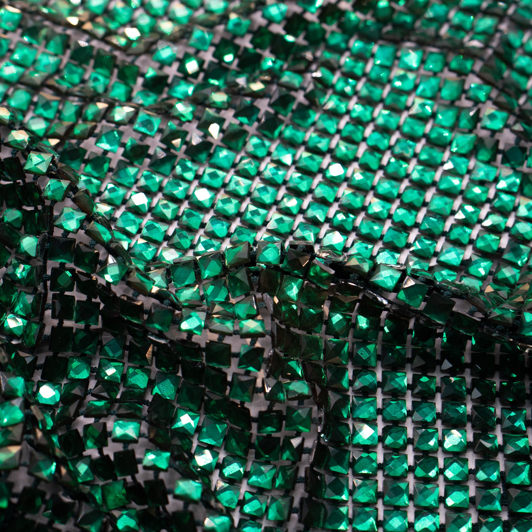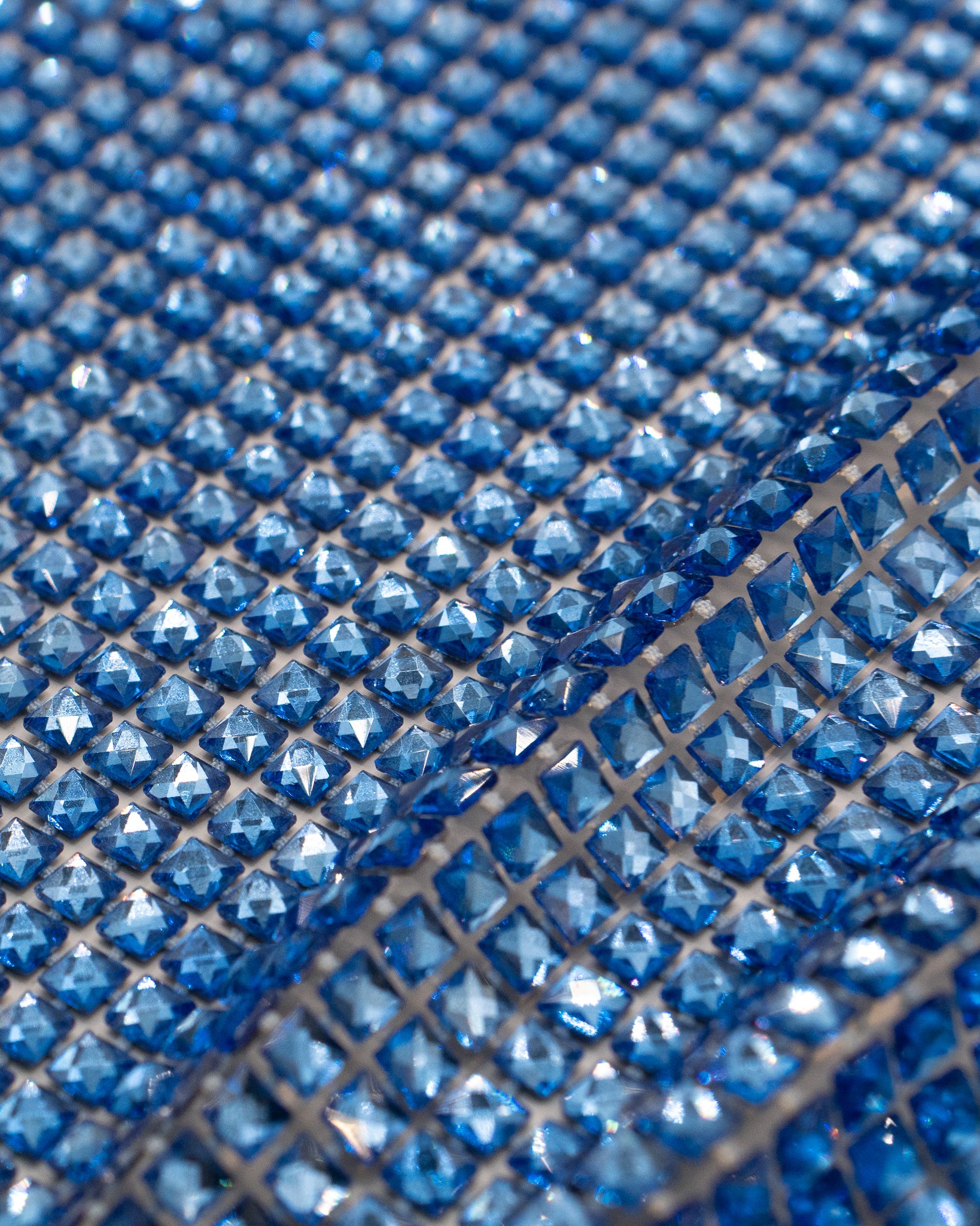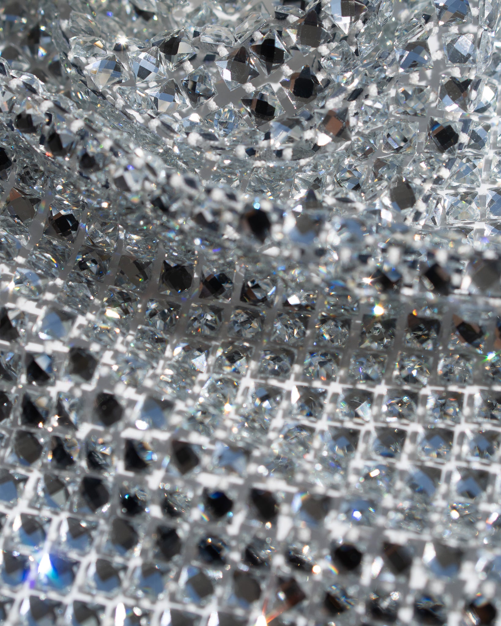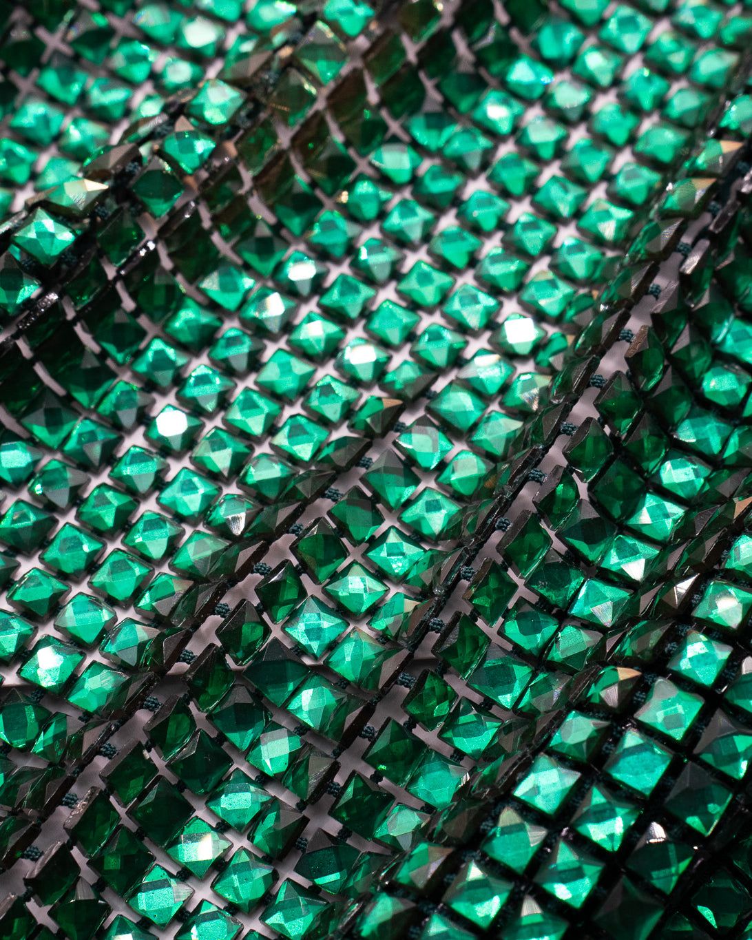 Crystal fishnet fabric with hotfix rhinestones designed for couture, stagewear and high-end fashion designers. This stretch net fabric combines transparency and brilliance, making it ideal for statement garments, performance costumes and eveningwear. Available in multiple crystal sizes, colors and settings.