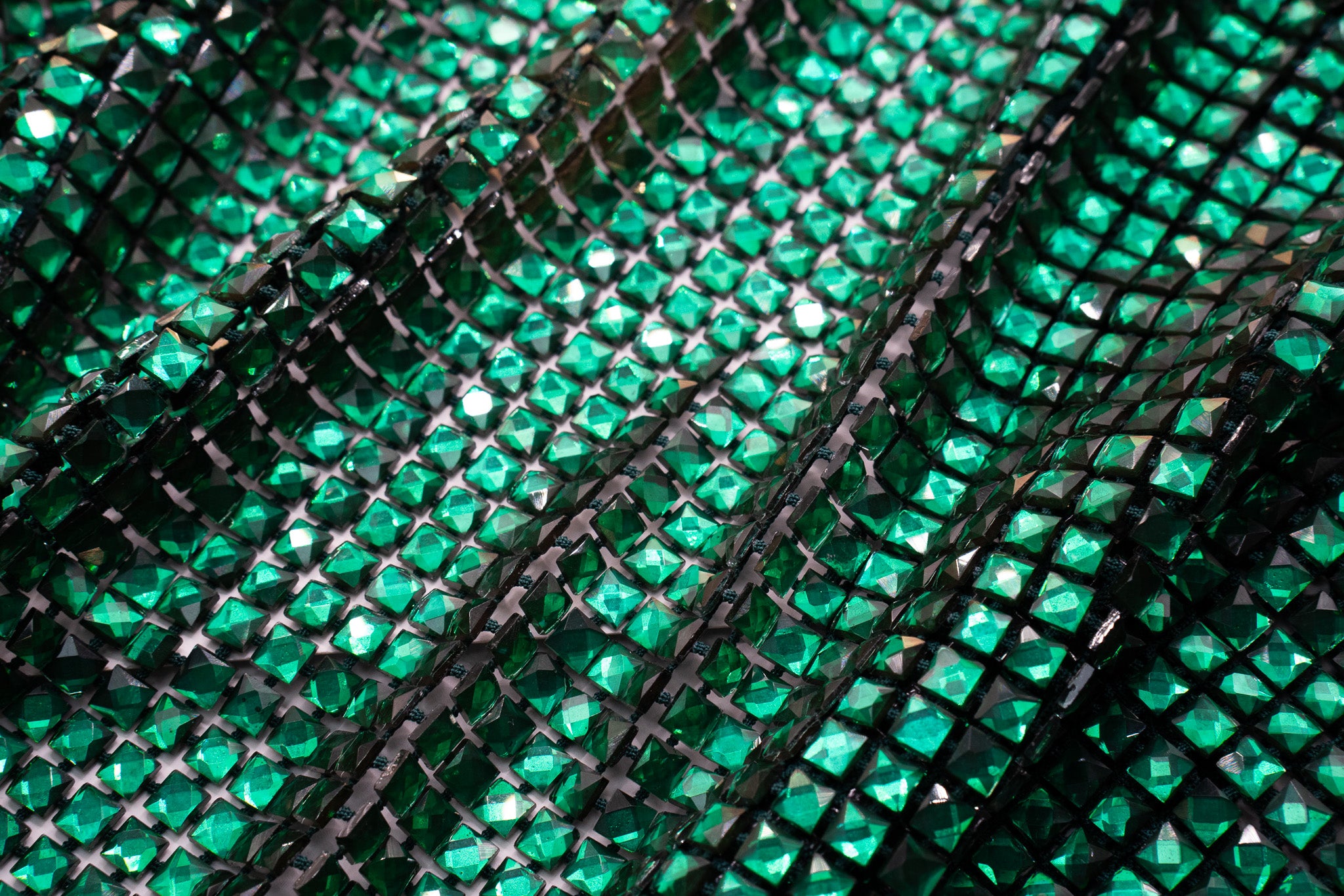 Emerald Siam Square Crystals in Black Fishnet – 6x6
