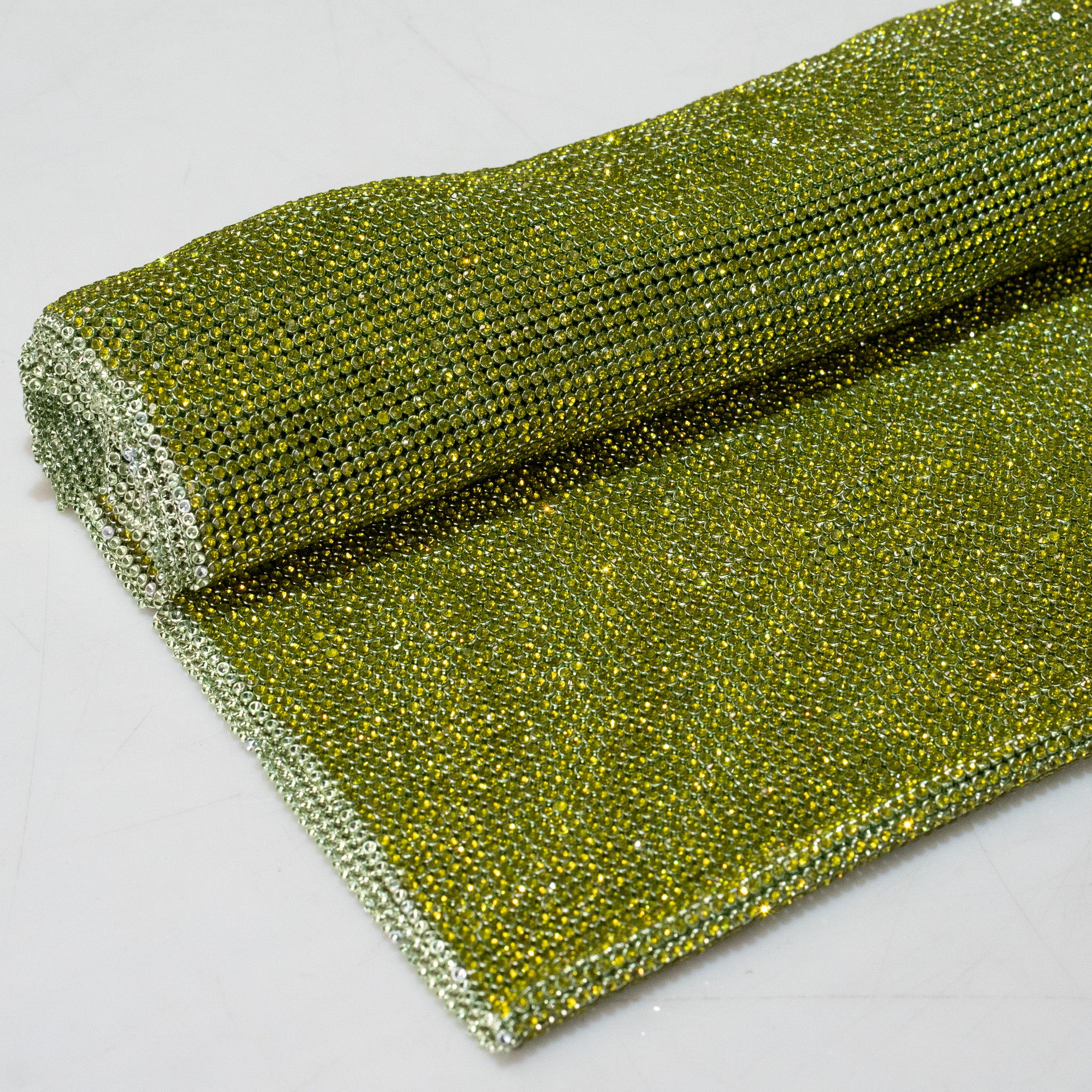 Our Crystal Mesh fabric combines flexibility with elegance, offering a stunning material perfect for a variety of applications. Available in two mesh qualities: brass and aluminum, both featuring integrated loose crystals.
