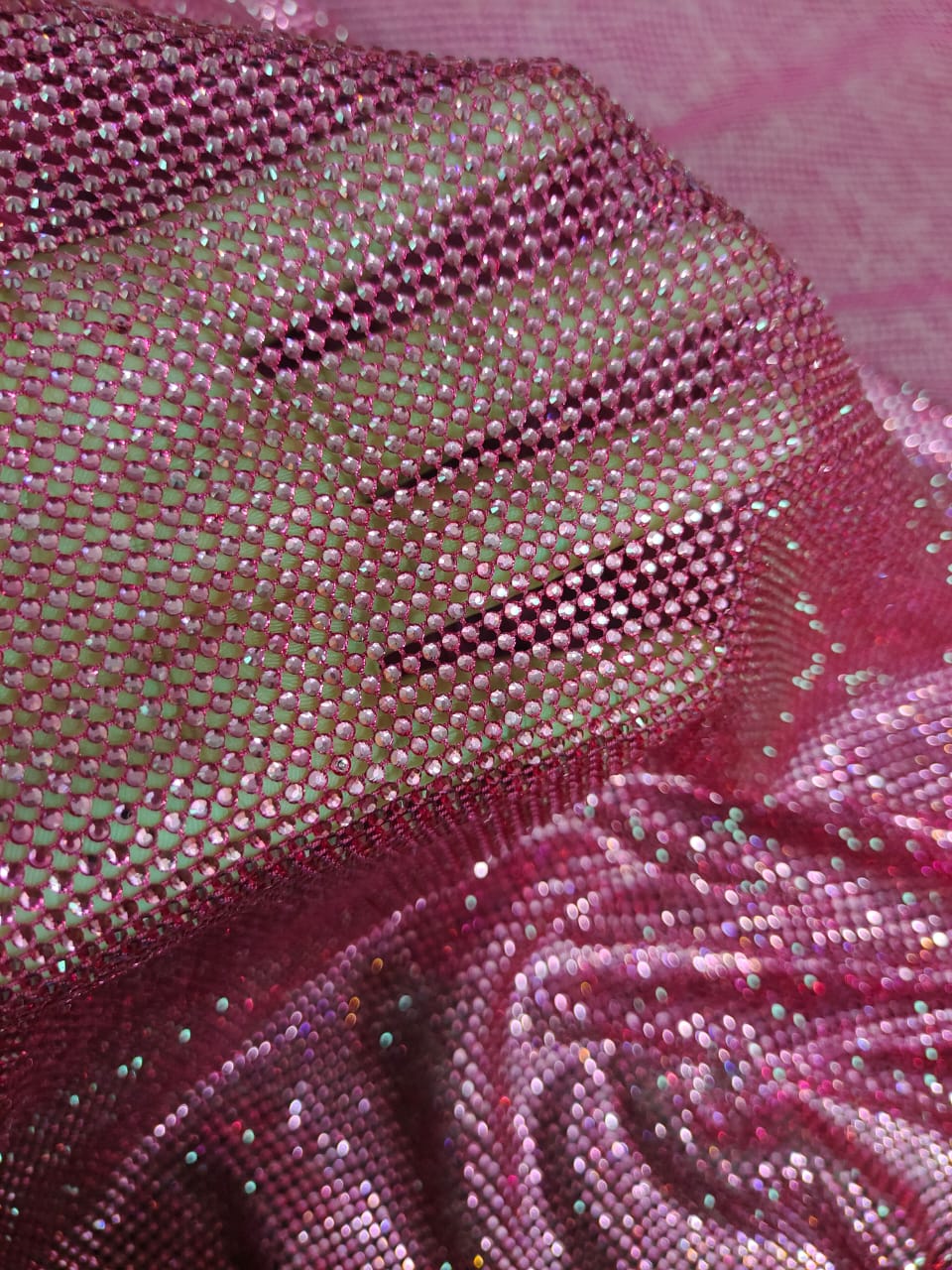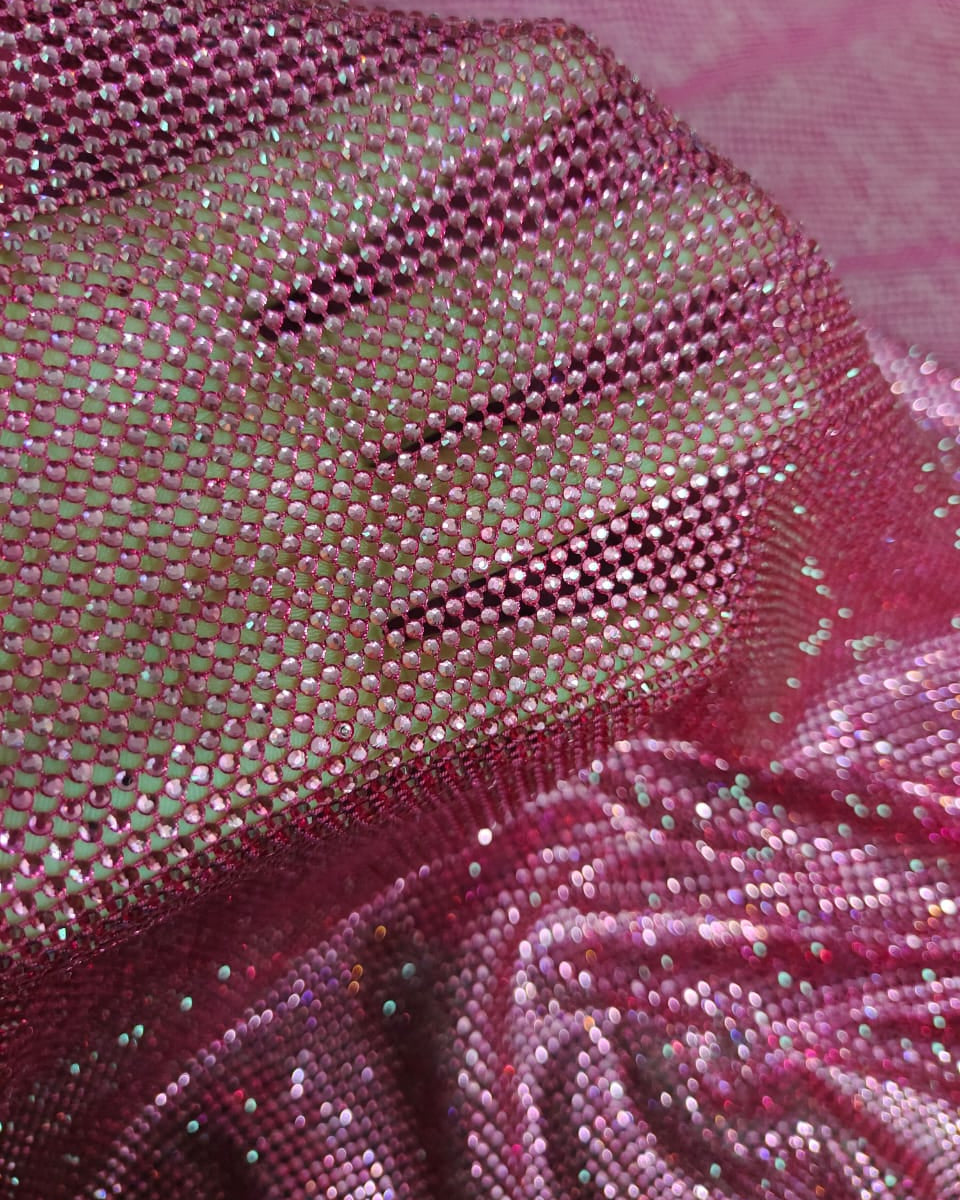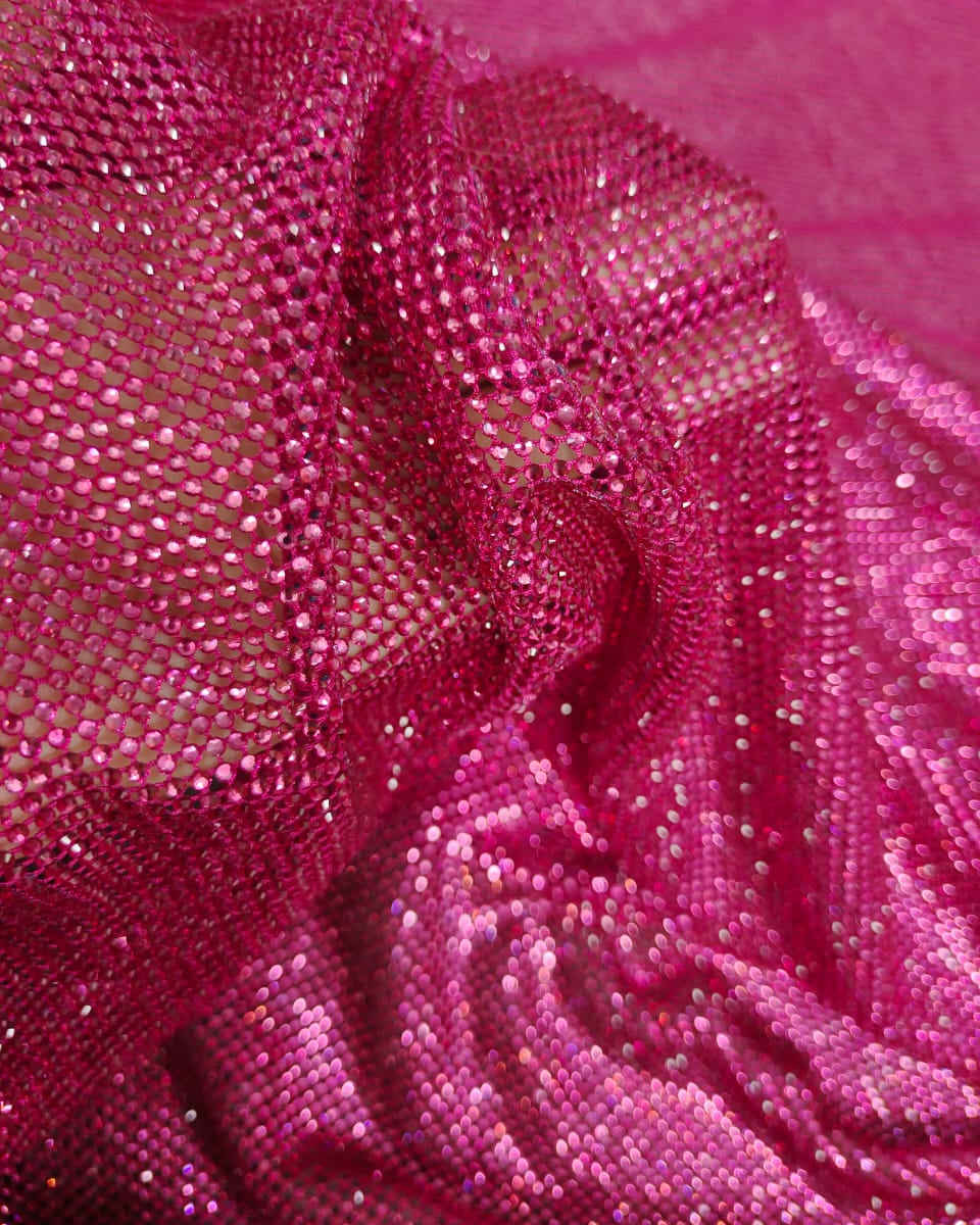 Elevate your creations with the allure of fishnet and the radiance of hotfix rhinestones. This fabric is designed for those who aren't afraid to make a statement, offering sheer sensuality and shimmering radiance. Craft captivating garments, accessories, or home decor that exude elegance and sophistication. Unleash your creativity with our iconic Crystal Fishnet and make every project an exquisite masterpiece. Order now to embark on a journey of sheer allure and dazzling brilliance.