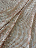 Elevate your designs with our Peach Crystal-Embellished Nude Fabric. This elegant fabric features sparkling Peach crystals that add a touch of sophistication and charm. Perfect for fashion, event decor, and custom creations, it offers unmatched quality and a subtle, radiant shine.