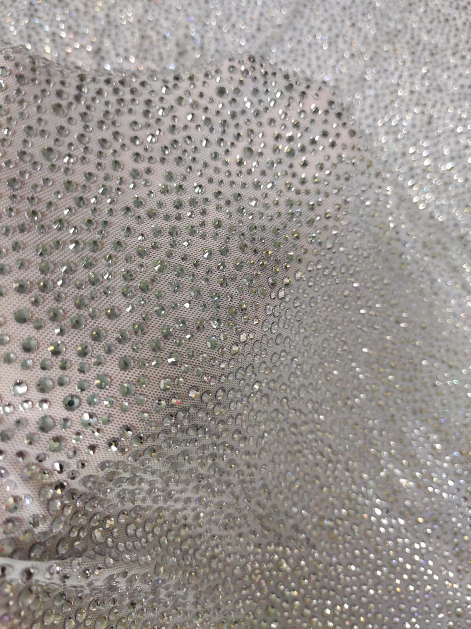 Silver Mixed Crystal Sizes on White Fabric