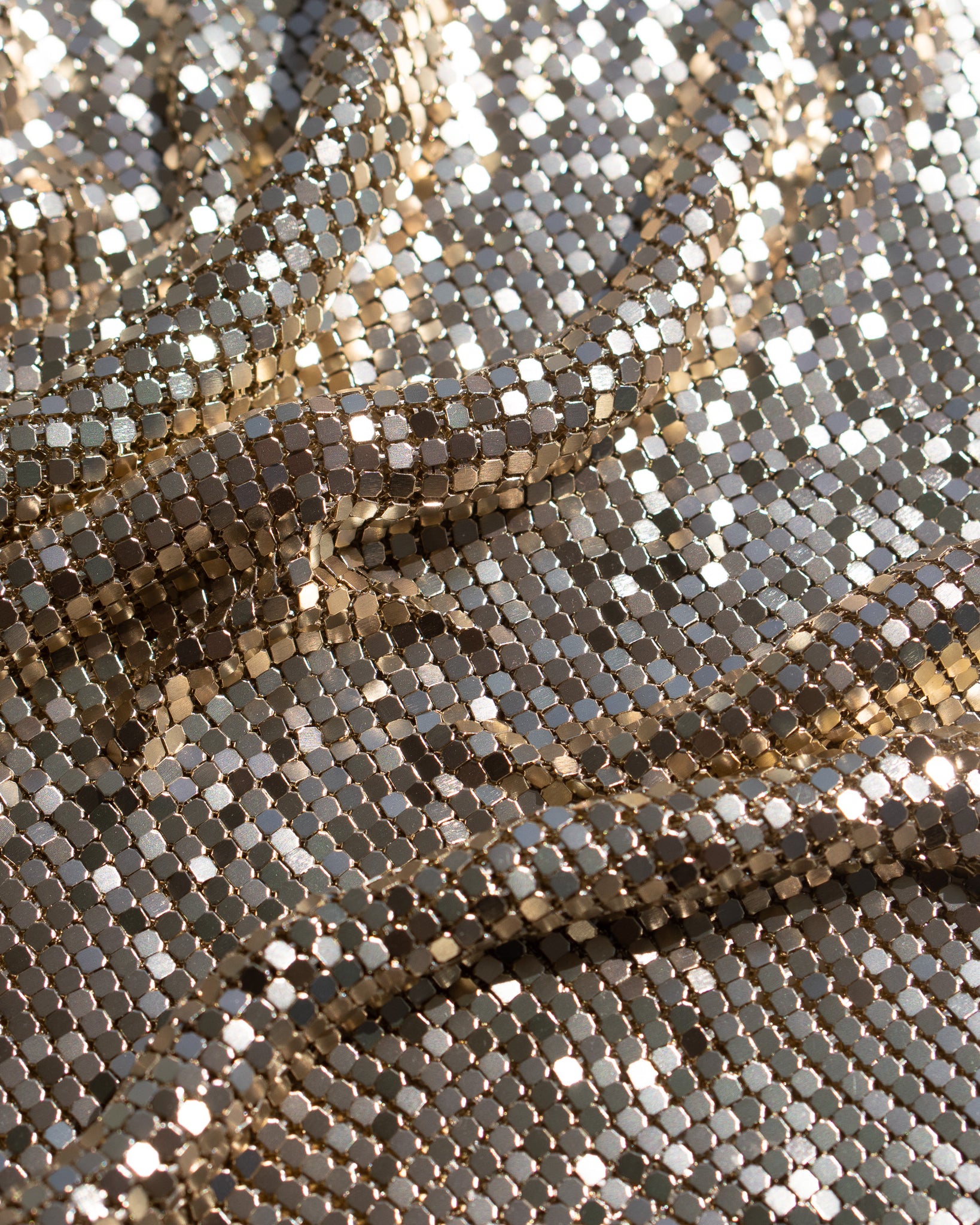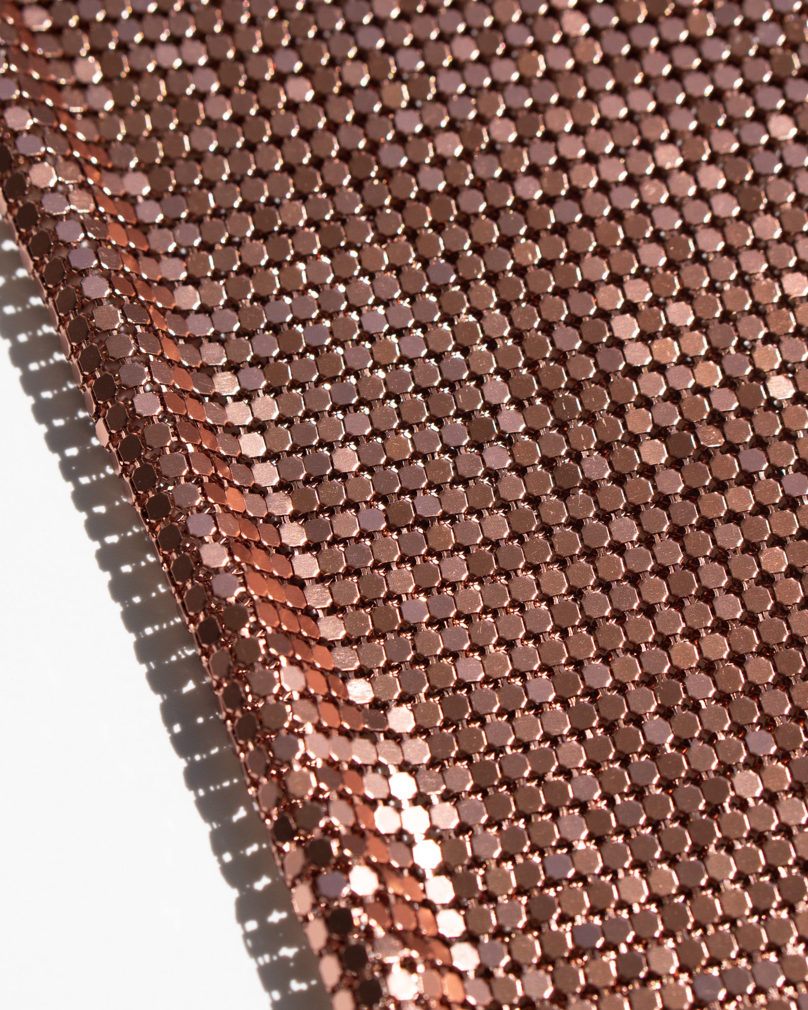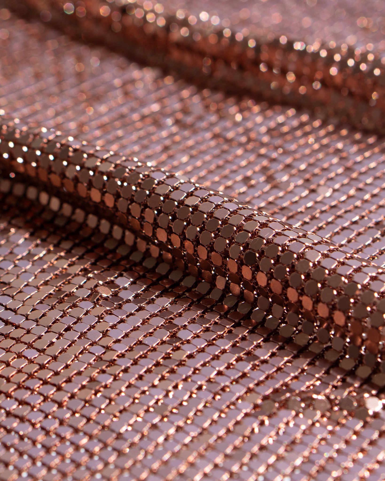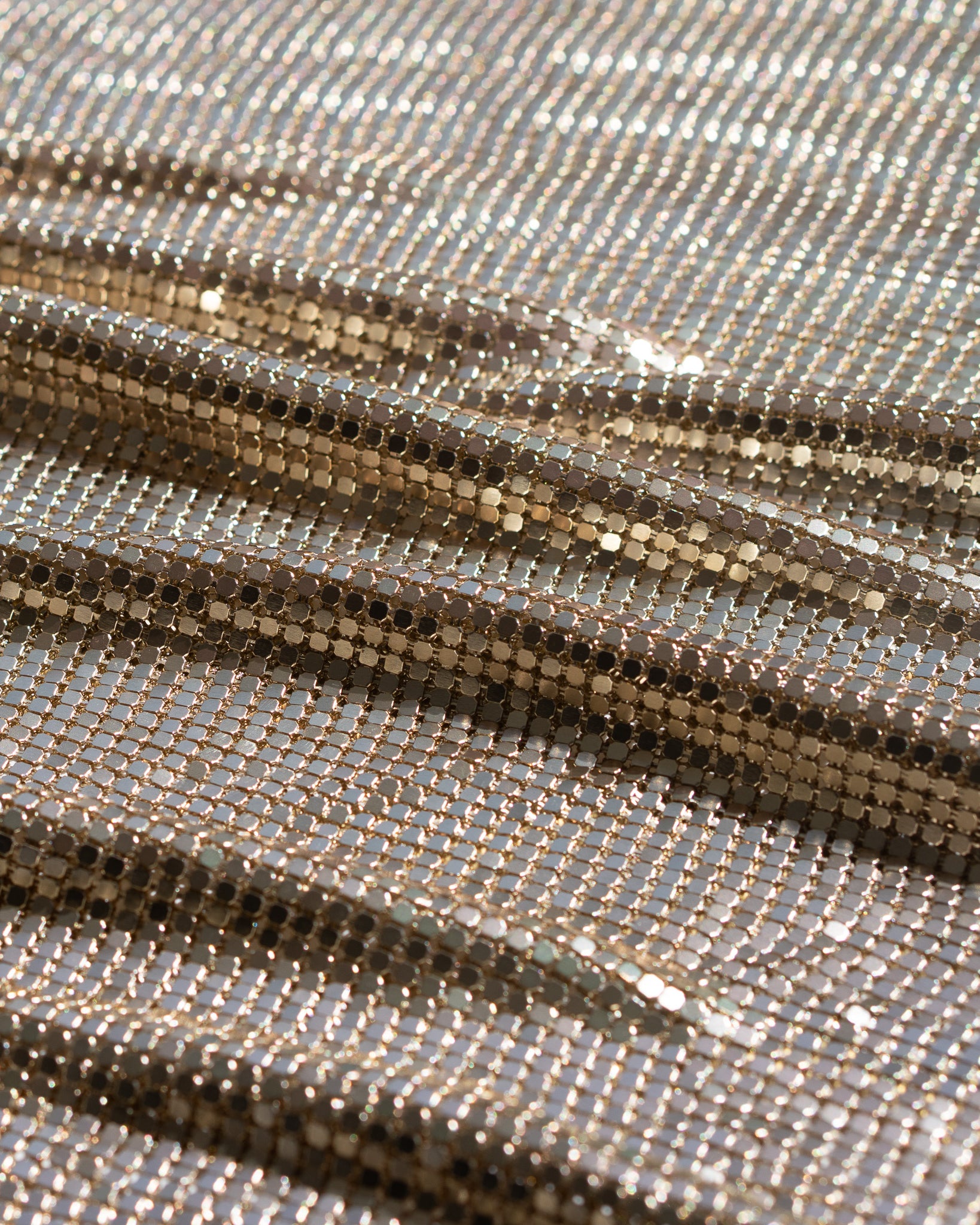 Metal mesh and chainmail fabric crafted for couture, stagewear and high-end fashion designers. Our premium metal mesh fabrics are available in brass, aluminum and custom finishes, offering structure, movement and shine. Ideal for statement garments, accessories and performance costumes. Available in multiple sizes, scales and finishes to suit your design vision.