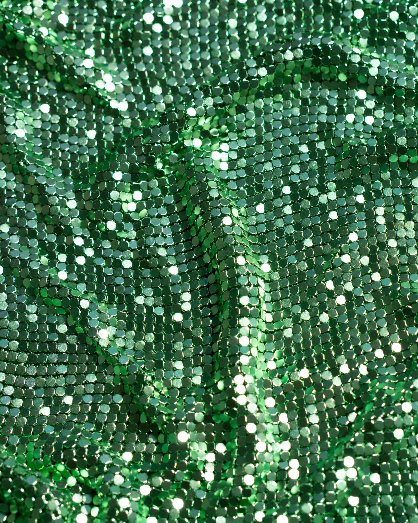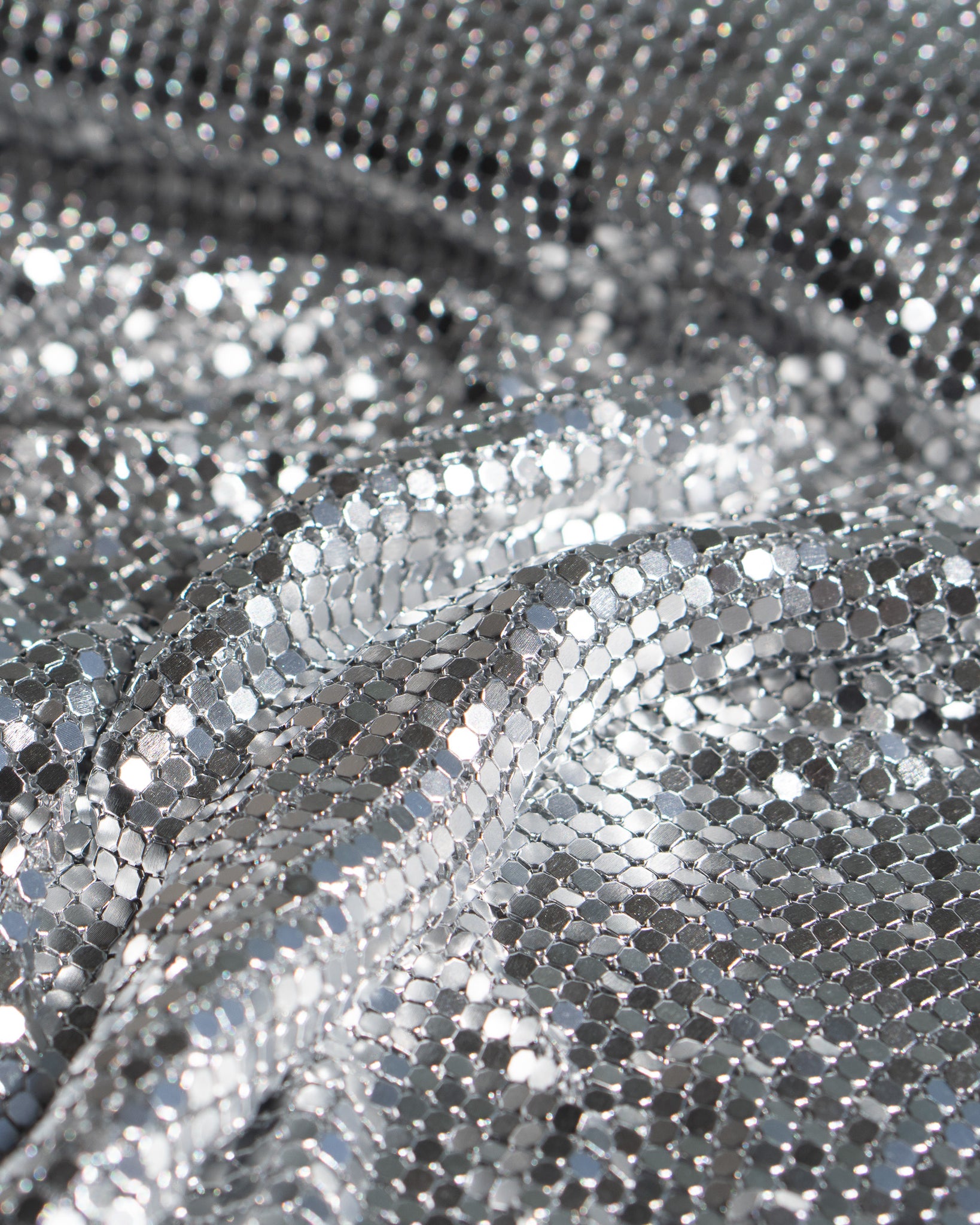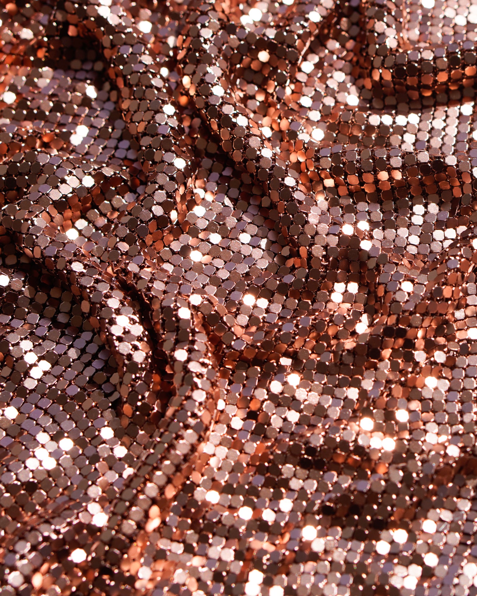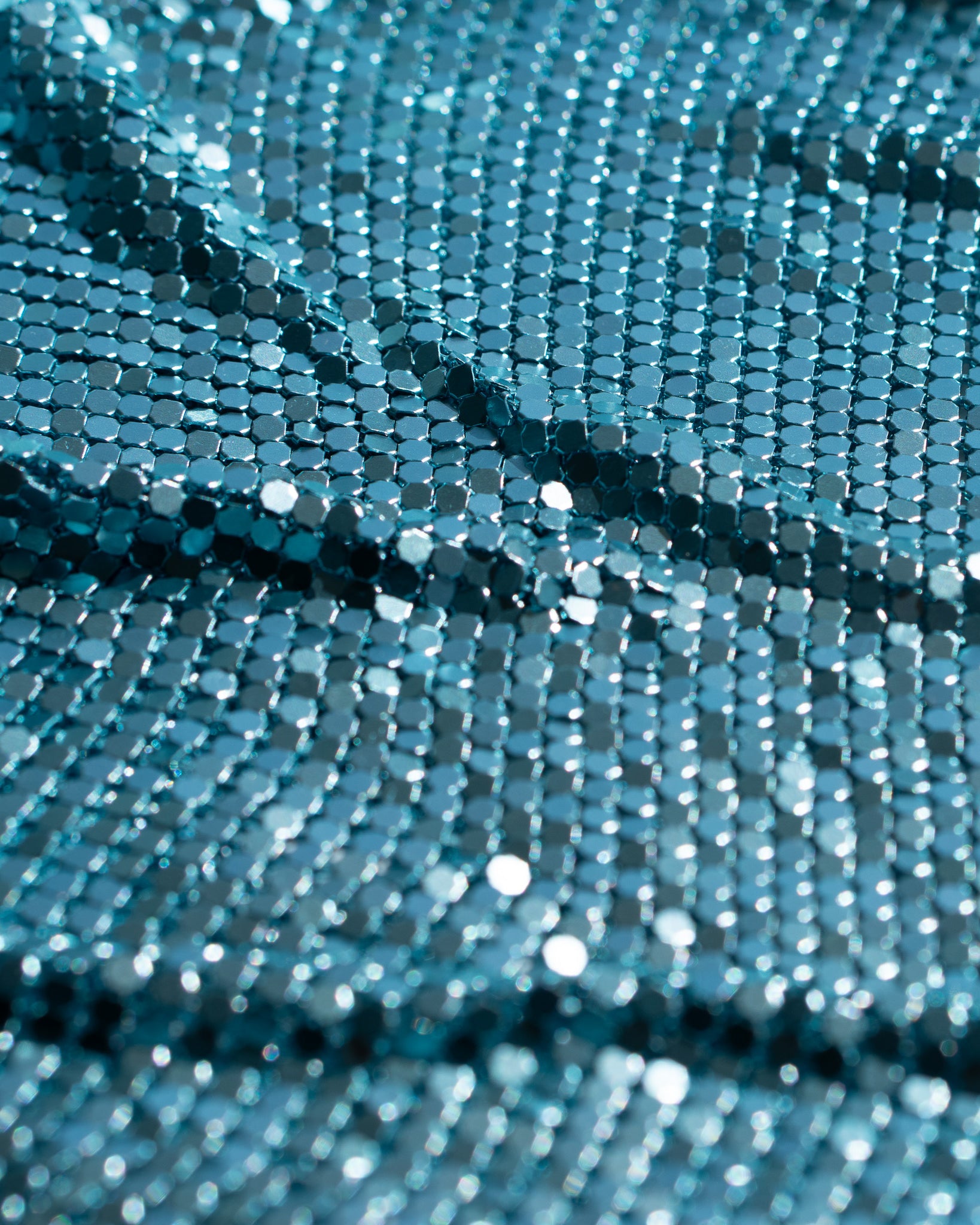 Metal mesh and chainmail fabric crafted for couture, stagewear and high-end fashion designers. Our premium metal mesh fabrics are available in brass, aluminum and custom finishes, offering structure, movement and shine. Ideal for statement garments, accessories and performance costumes. Available in multiple sizes, scales and finishes to suit your design vision.