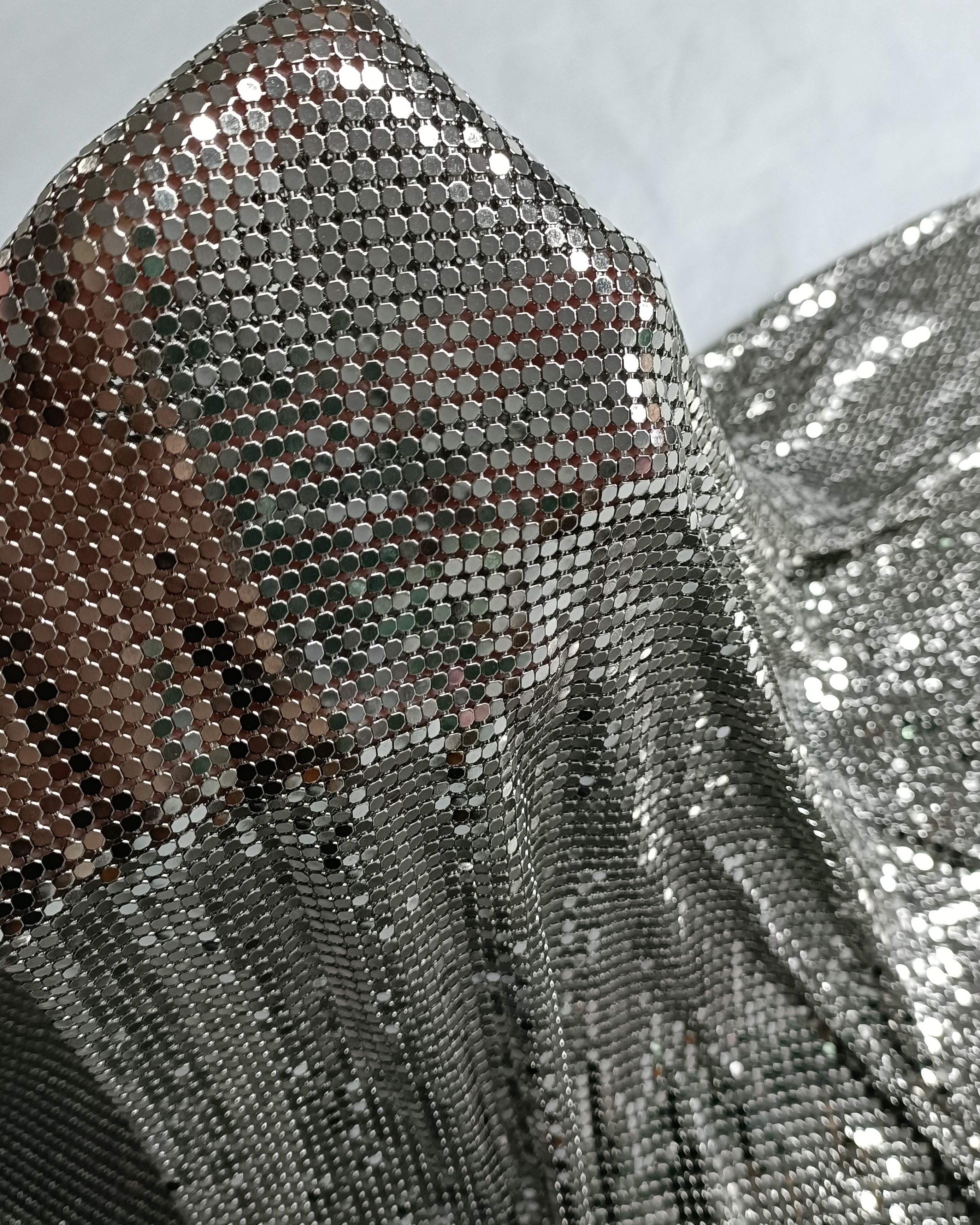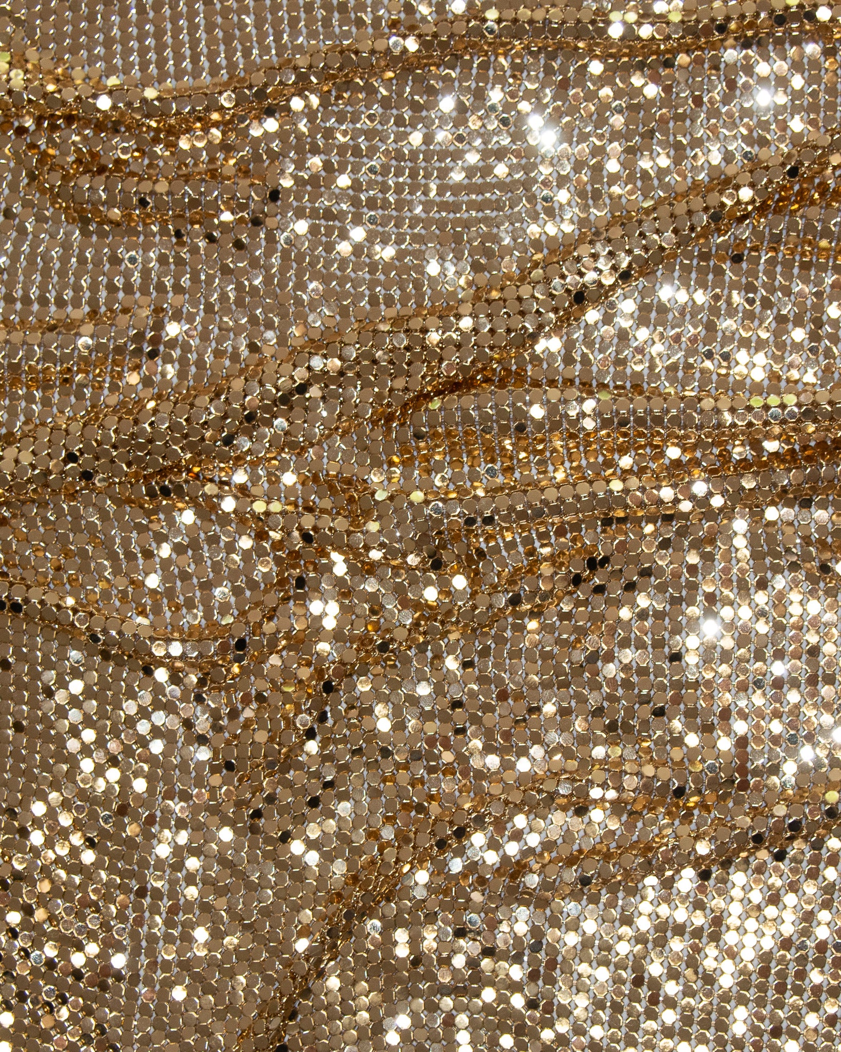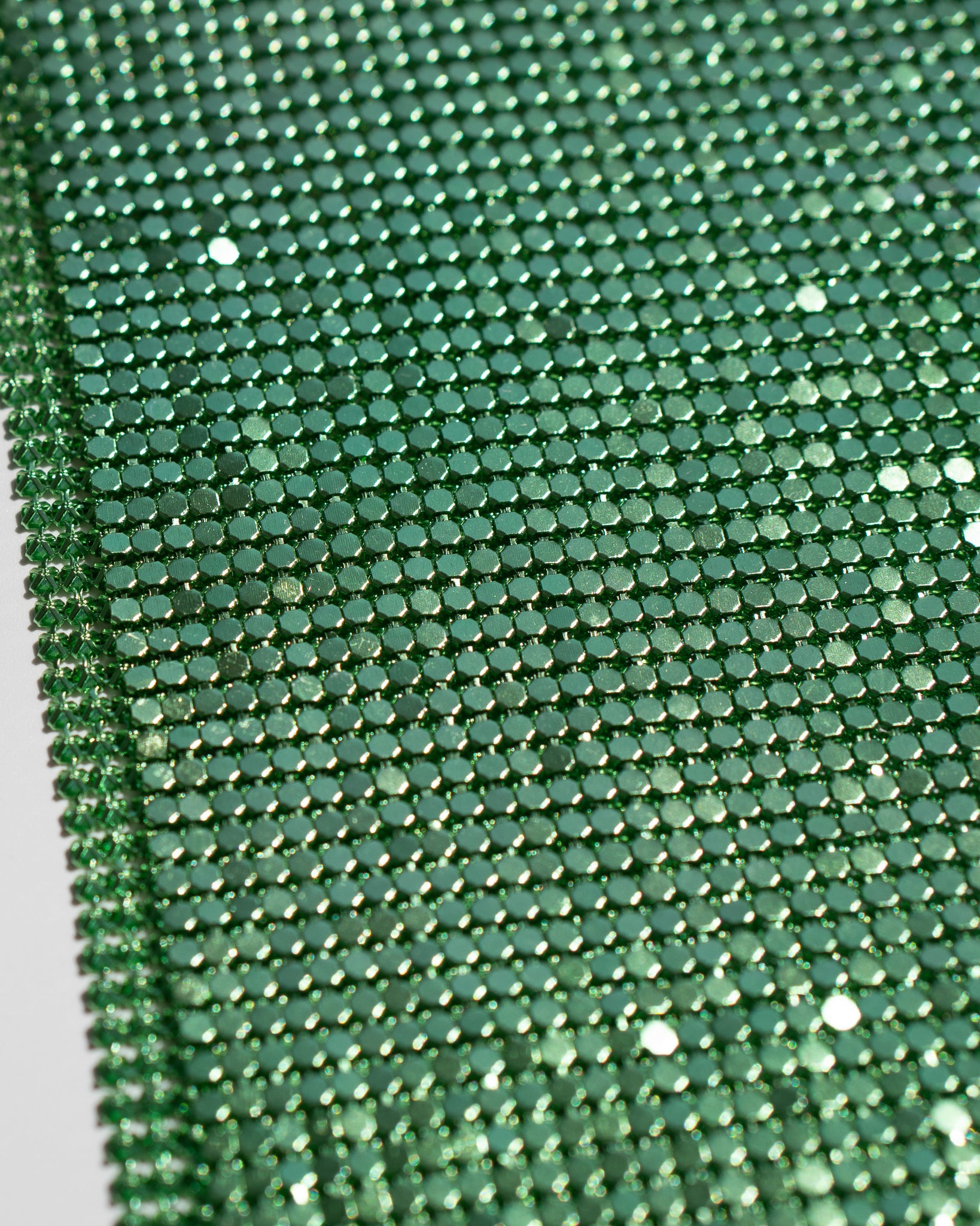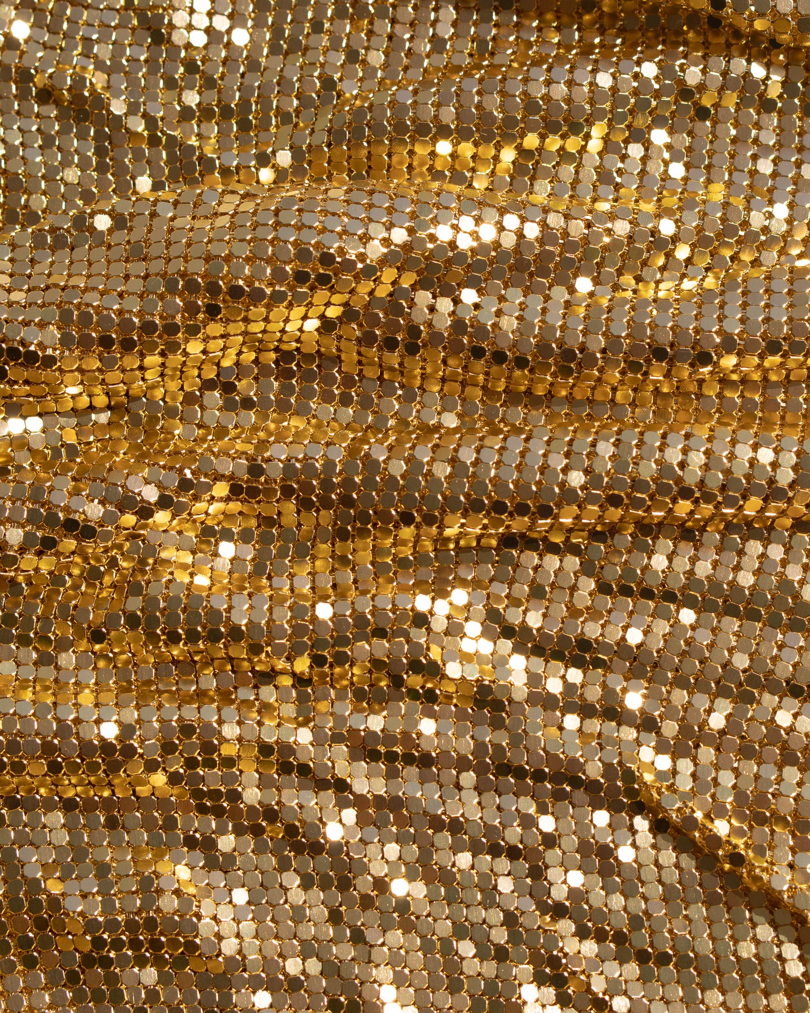 Metal mesh and chainmail fabric crafted for couture, stagewear and high-end fashion designers. Our premium metal mesh fabrics are available in brass, aluminum and custom finishes, offering structure, movement and shine. Ideal for statement garments, accessories and performance costumes. Available in multiple sizes, scales and finishes to suit your design vision.