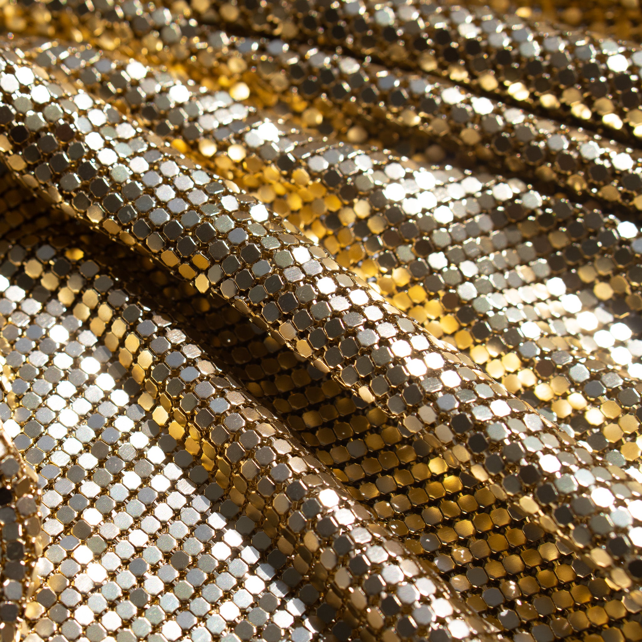 We offer a broad range of metal mesh qualities, including aluminum, copper, and stainless steel, catering to diverse price points and quality preferences. Each fabric features intricately woven metal links, providing a stunning appearance akin to liquid gold.