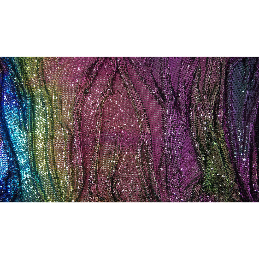 Multicolor Iridescent Metal Mesh Chainmail Fabric