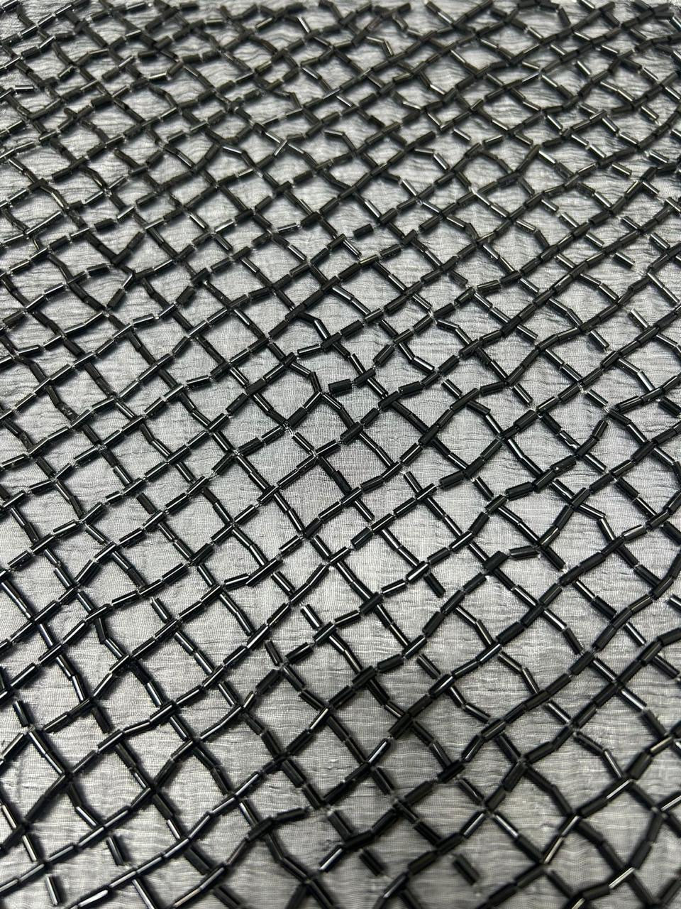 Black Pearl and Crystal Hand Beaded Fabric