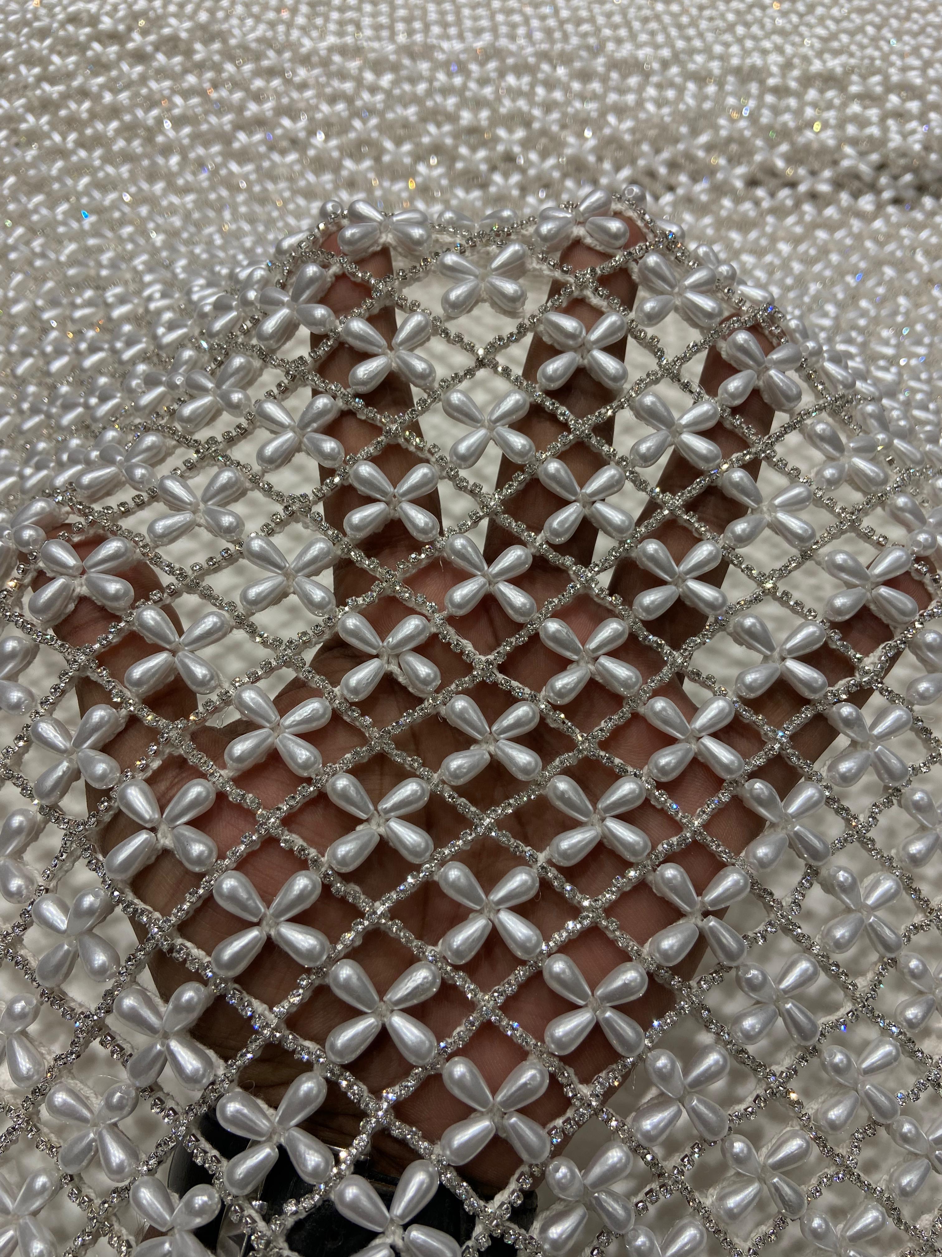 Pearl and Crystal Hand Beaded Fabric