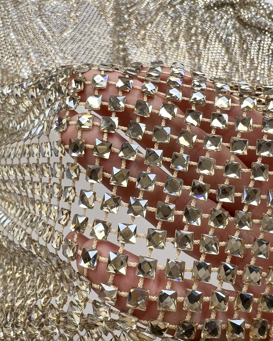 Luxe Hand-Beaded Crystal Tulle Fabric