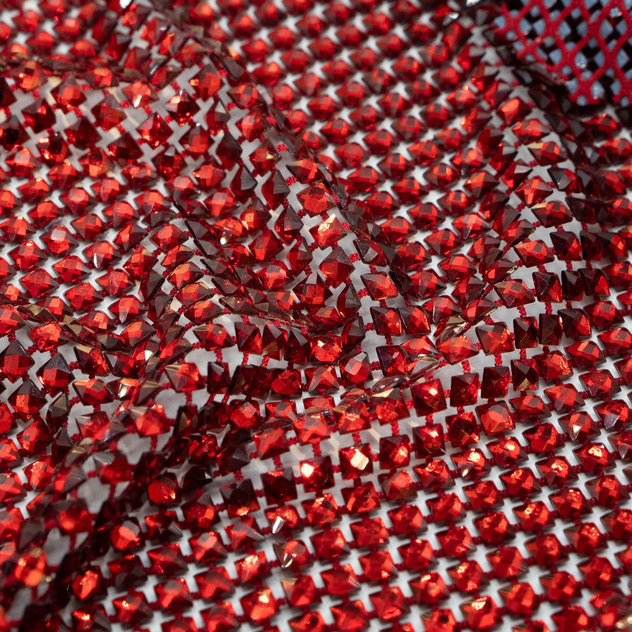 Light Siam Square Crystals in Red Fishnet – 6x6