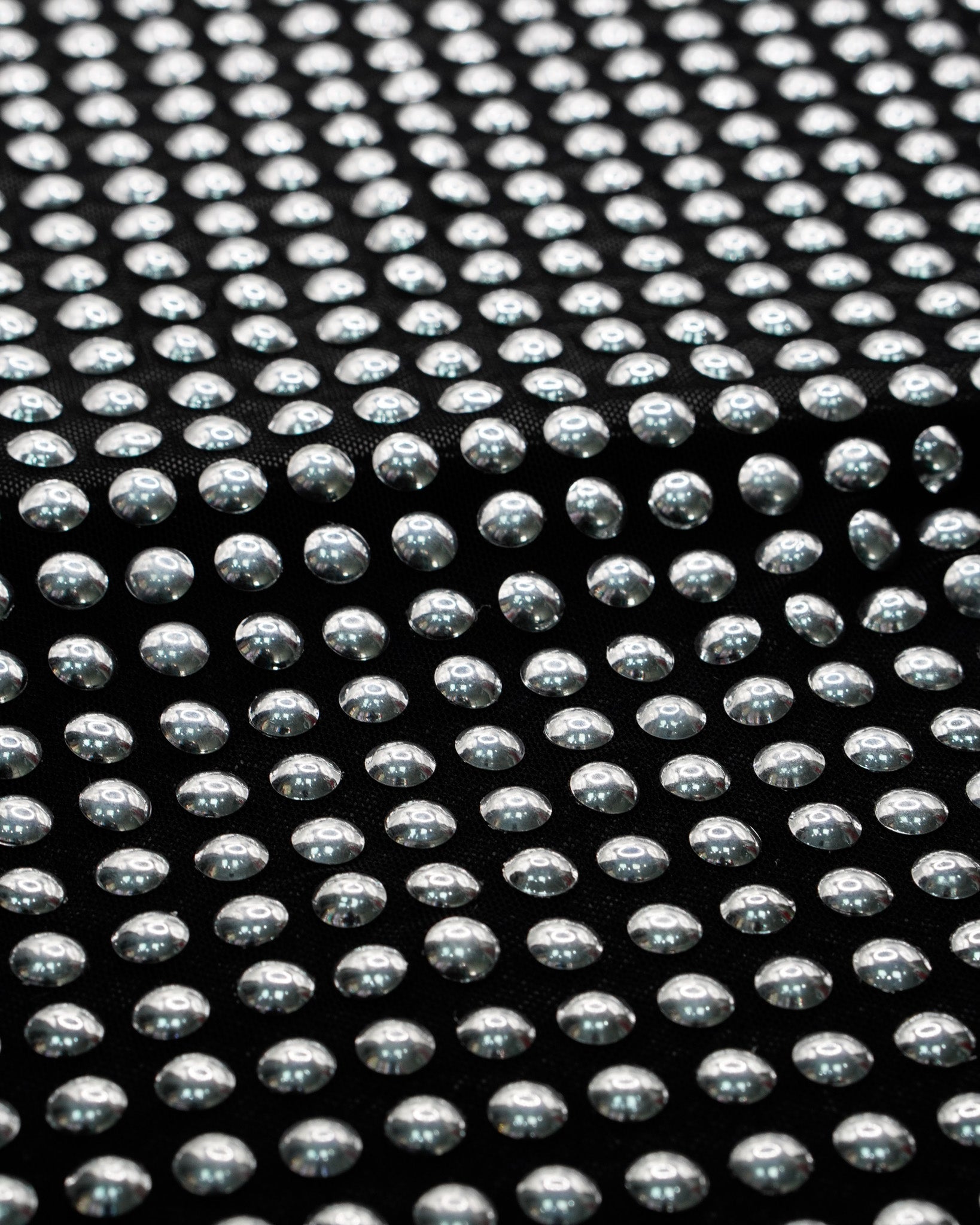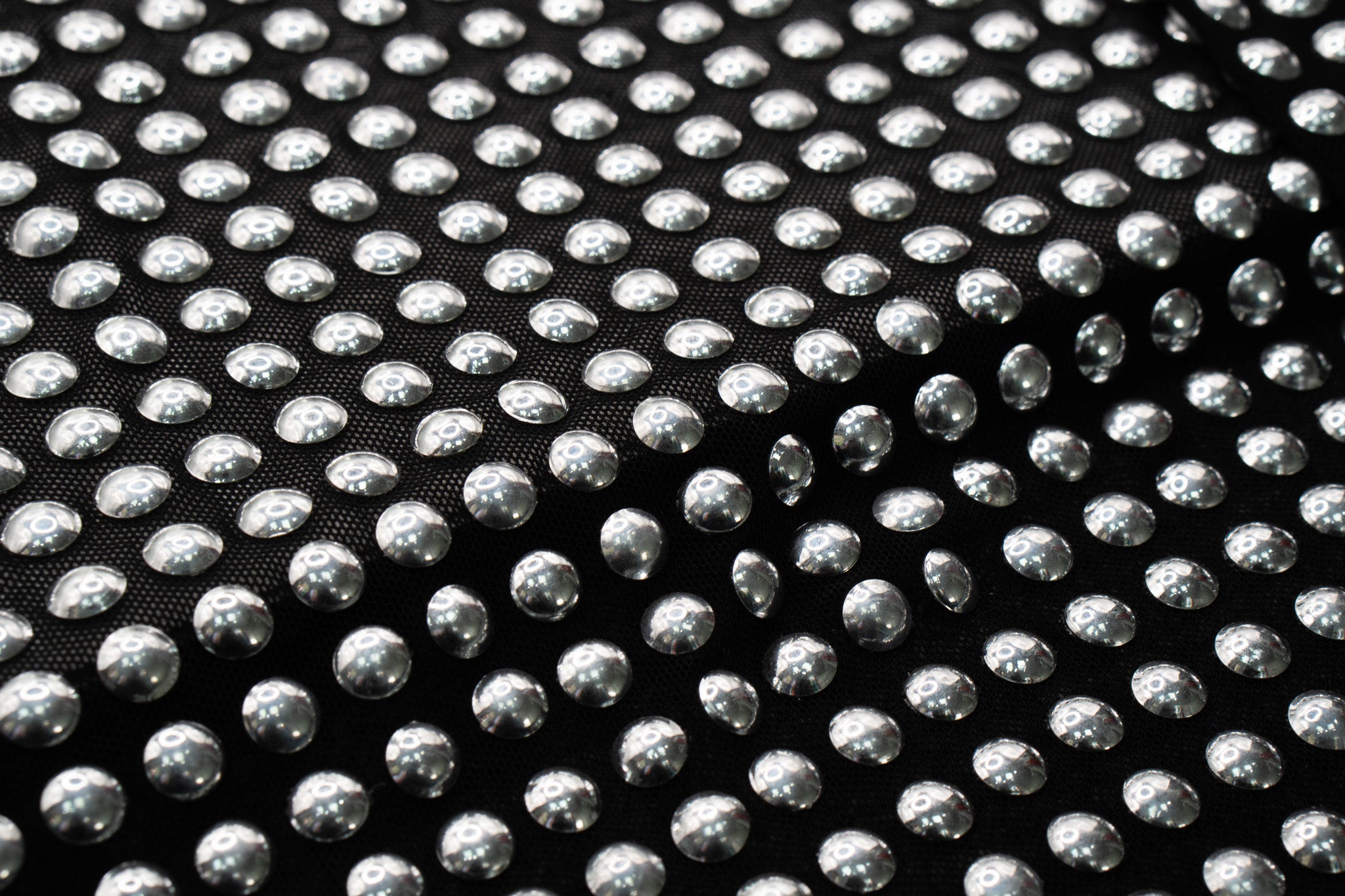 Silver Dome Stud Fabric on Black Stretch Power Mesh