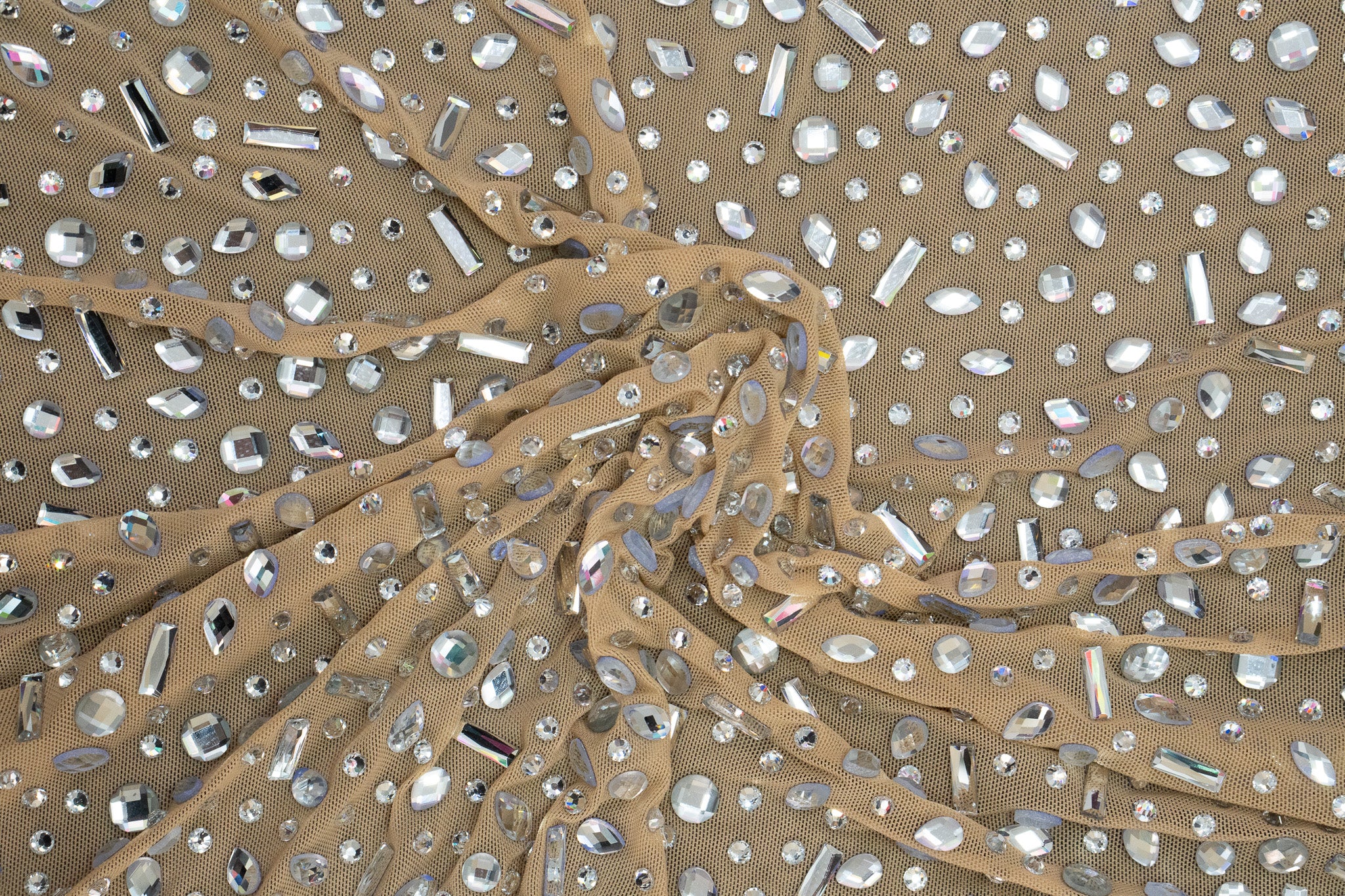 Silver Mixed-Size Crystals in Nude Mesh Base