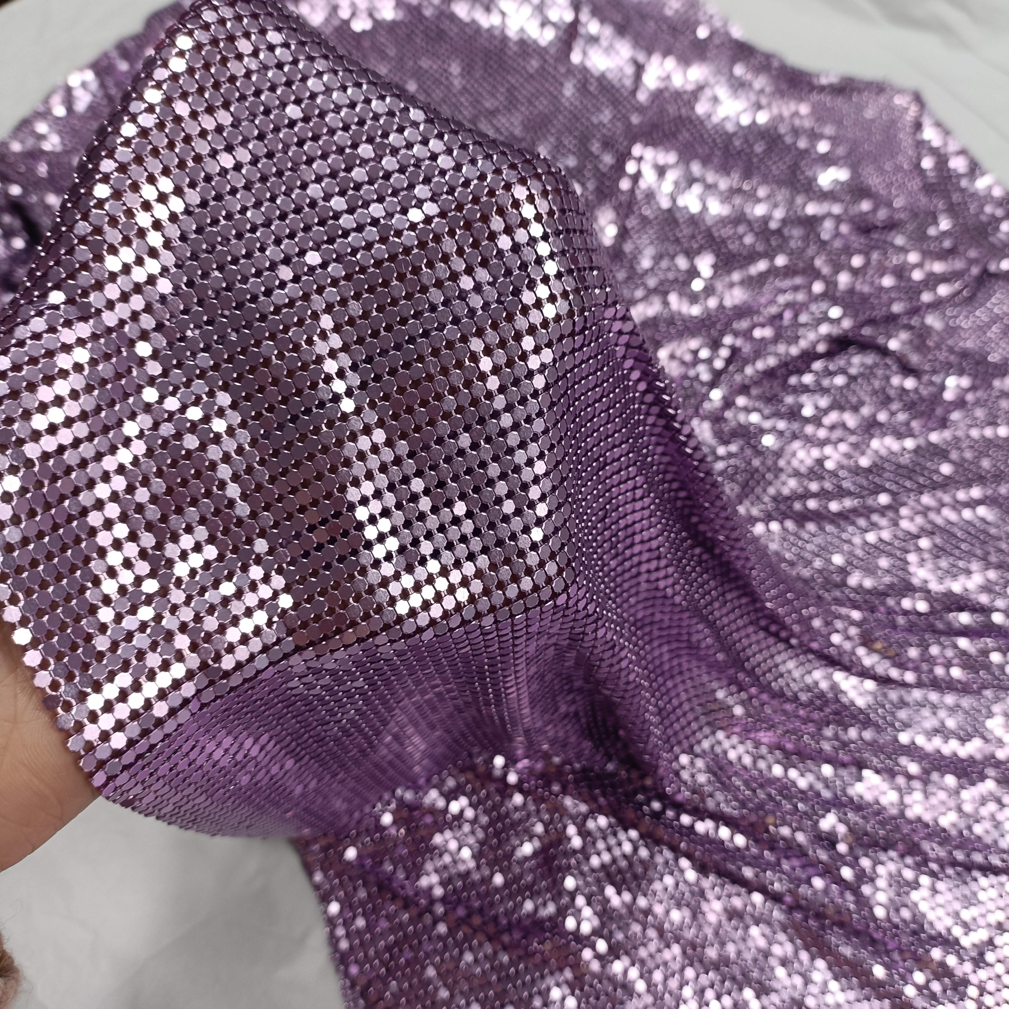 Transform your designs with our Lilac Chainmail Metal Mesh Aluminum Fabric. This elegant fabric showcases a delicate lilac hue paired with the sleekness of aluminum, offering a soft yet eye-catching appearance. Perfect for creating stylish fashion pieces, refined accessories, and sophisticated decor, its chainmail structure ensures flexibility and a unique texture. Ideal for adding a touch of modern luxury and durability to any project.