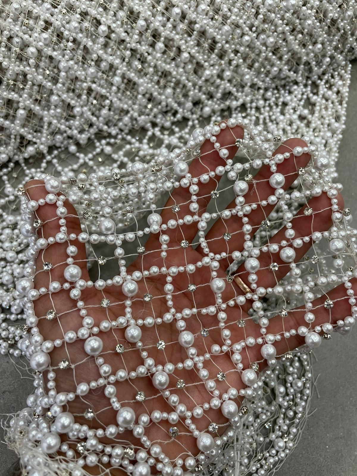 Pearl Hand Beaded Fabric