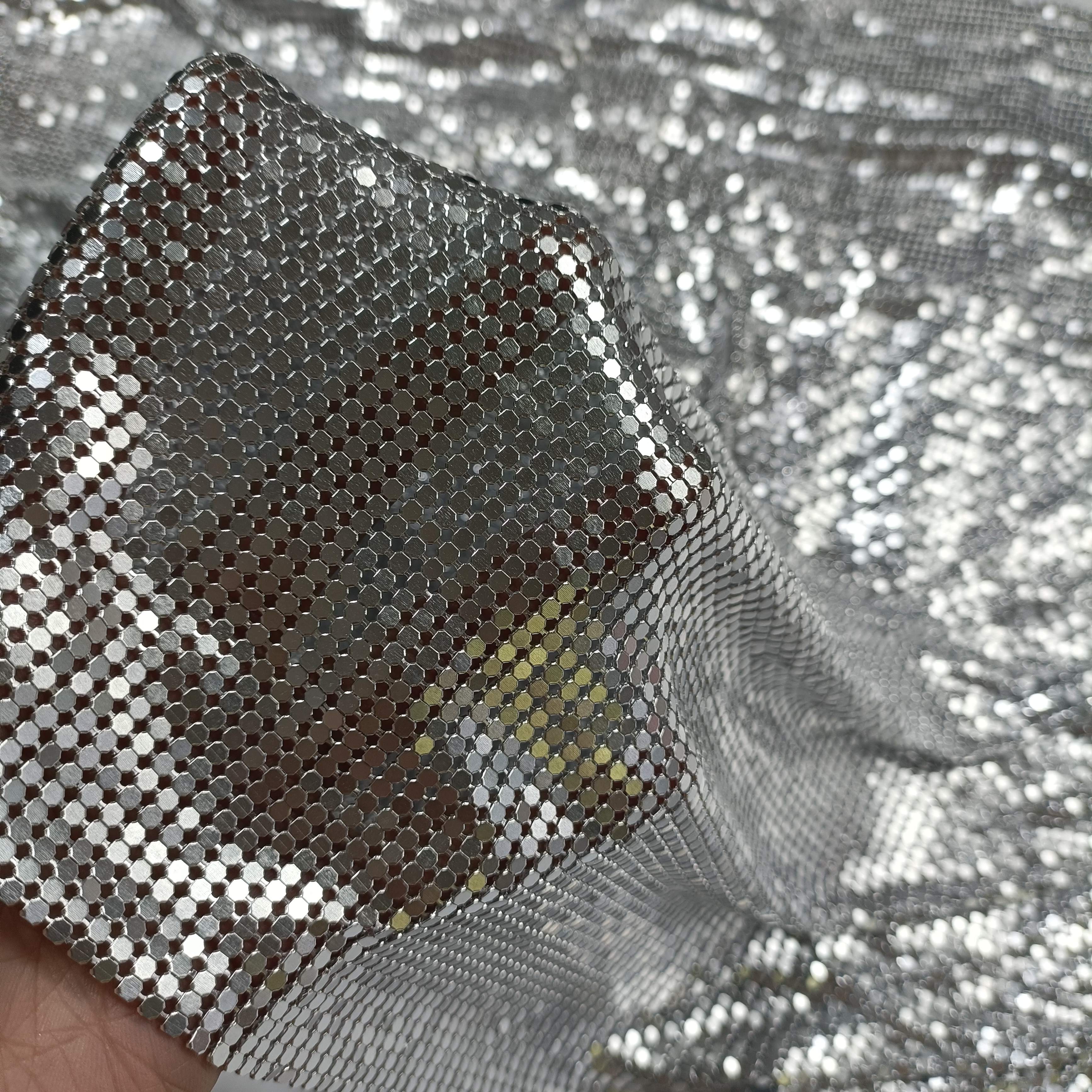 Discover the ultimate in glamorous metallics with our Silver Metal Mesh Chainmail Fabric, a must-have for fashion-forward designs! Inspired by the iconic chainmail dresses of the 1960s and the dazzling Paris Hilton outfits of the early 2000s, this striking fabric is making a comeback. Made from high-quality aluminum, it offers a heavy weight with a sparkling finish that is both flexible and waterproof, perfect for creating couture dresses, statement accessories, and sophisticated home decor.